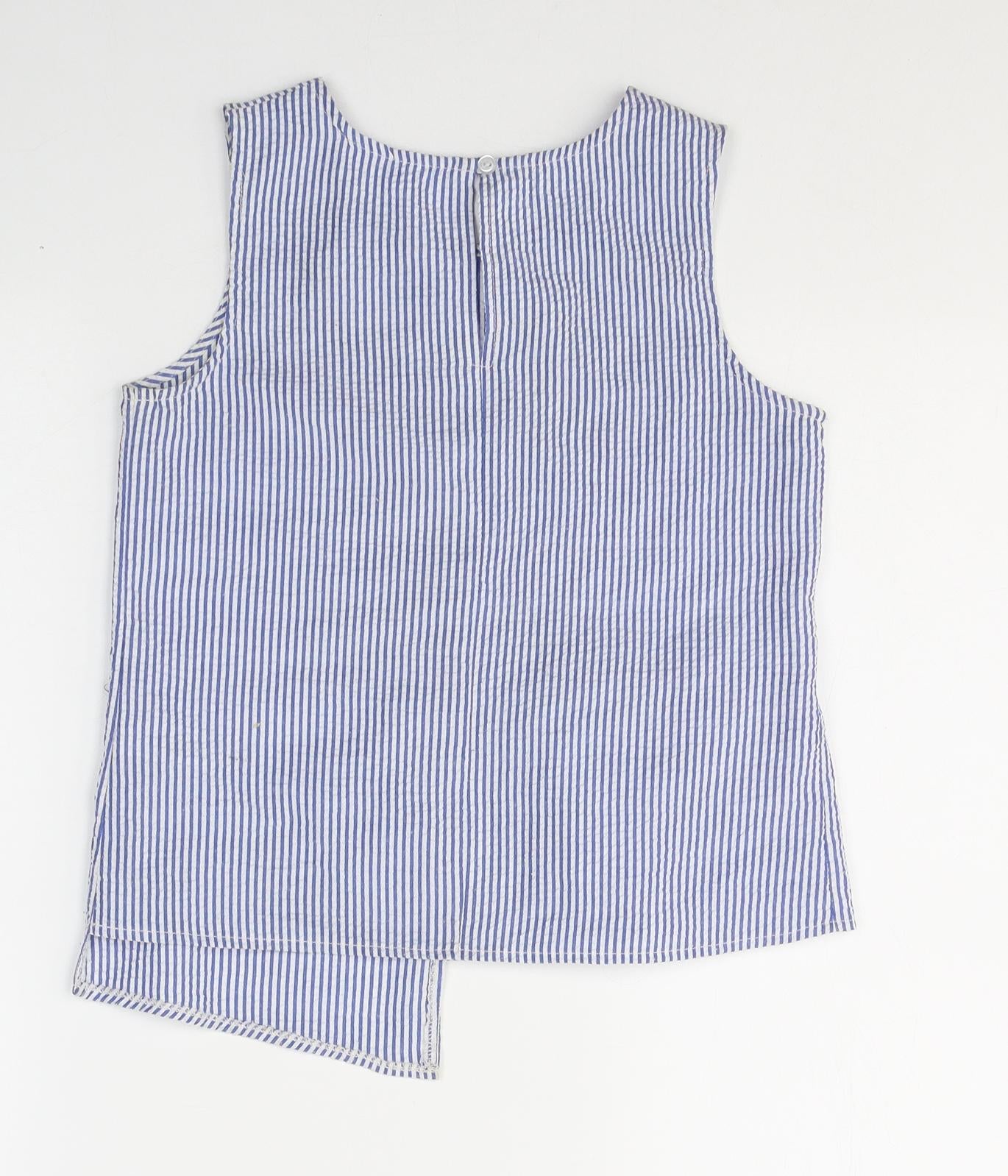 Girls Blue Striped Polyester Basic Tank Size 10-11 Years Round Neck Pullover