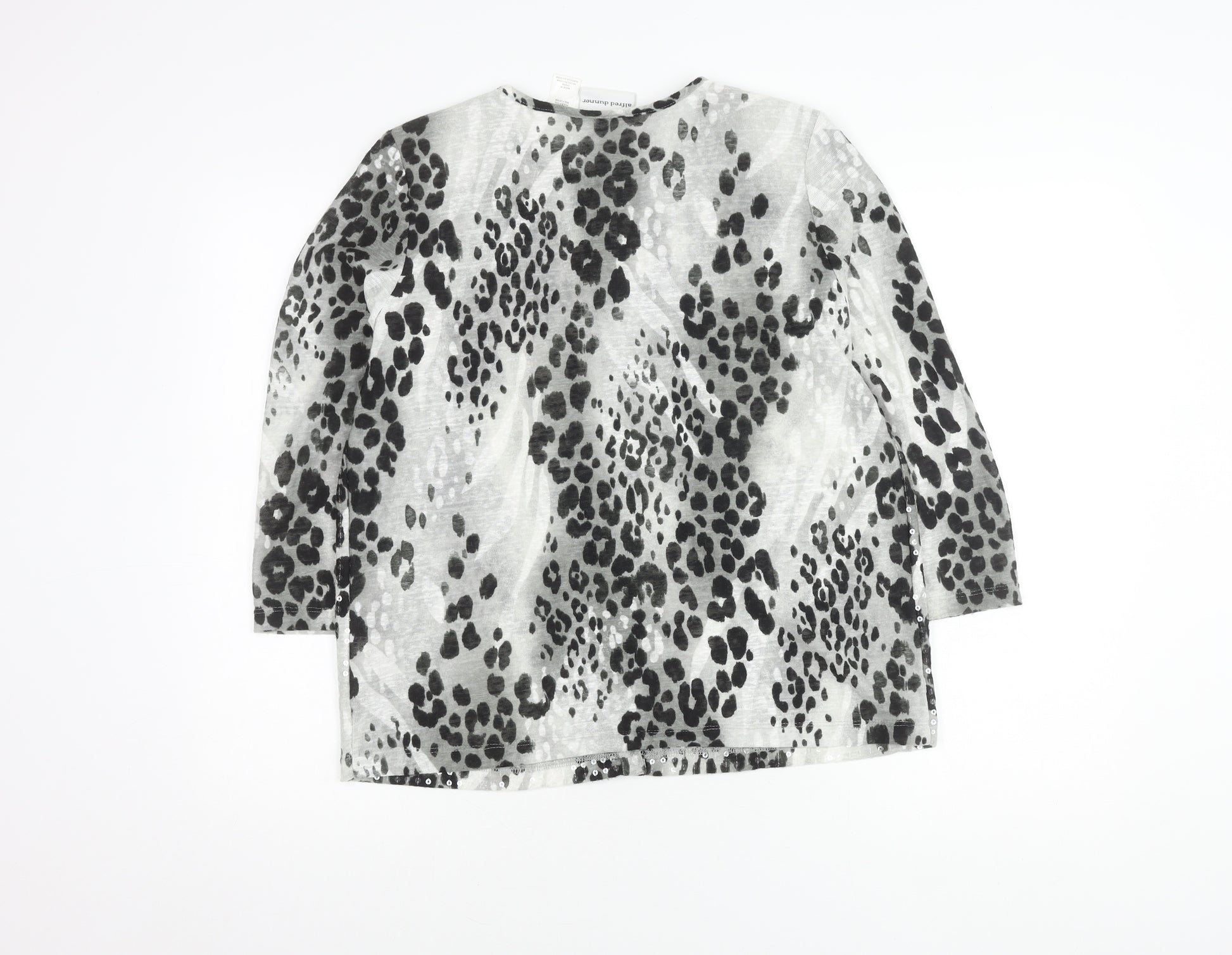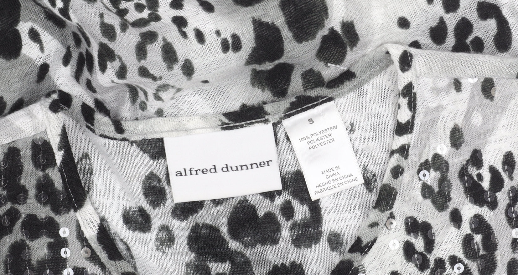 Discover elegance with this Alfred Dunner women's cardigan, an exquisite addition to your wardrobe. Crafted entirely from polyester for a comfortable and durable experience, this knit cardigan features a striking animal print design, highlighted with sequins for a touch of sparkle. Perfect for women who appreciate a blend of style and comfort, the cardigan comes in a versatile multicoloured hue that pairs effortlessly with a variety of outfits. Designed for regular fit, it incorporates 3/4 sleeves, making it ideal for mild weather. Although previously owned, this cardigan remains in excellent condition, with no obvious signs of wear. Elevate your casual wear with this eye-catching piece that's sure to make a statement. Ideal for those looking to bring a unique touch to their everyday style, it offers a flattering fit and vibrant aesthetics.