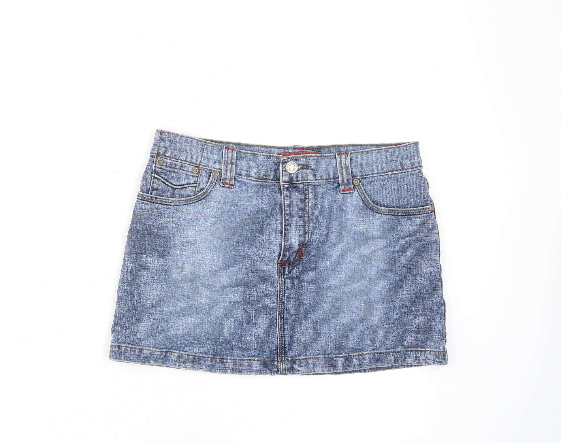 Womens Blue Cotton Mini Skirt Size 8 Zip - Pockets