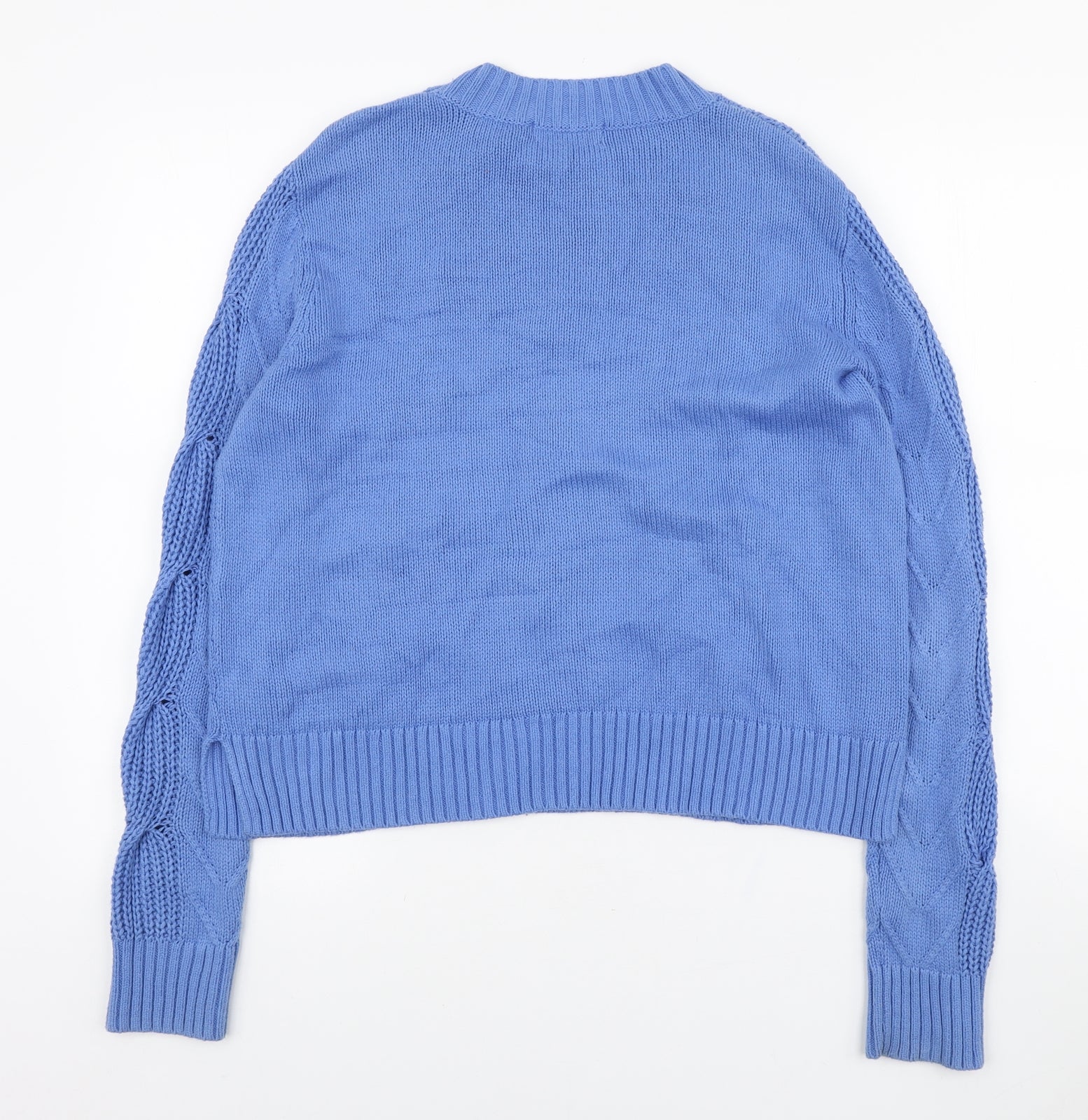 Womens Blue Round Neck Cotton Pullover Jumper Size L