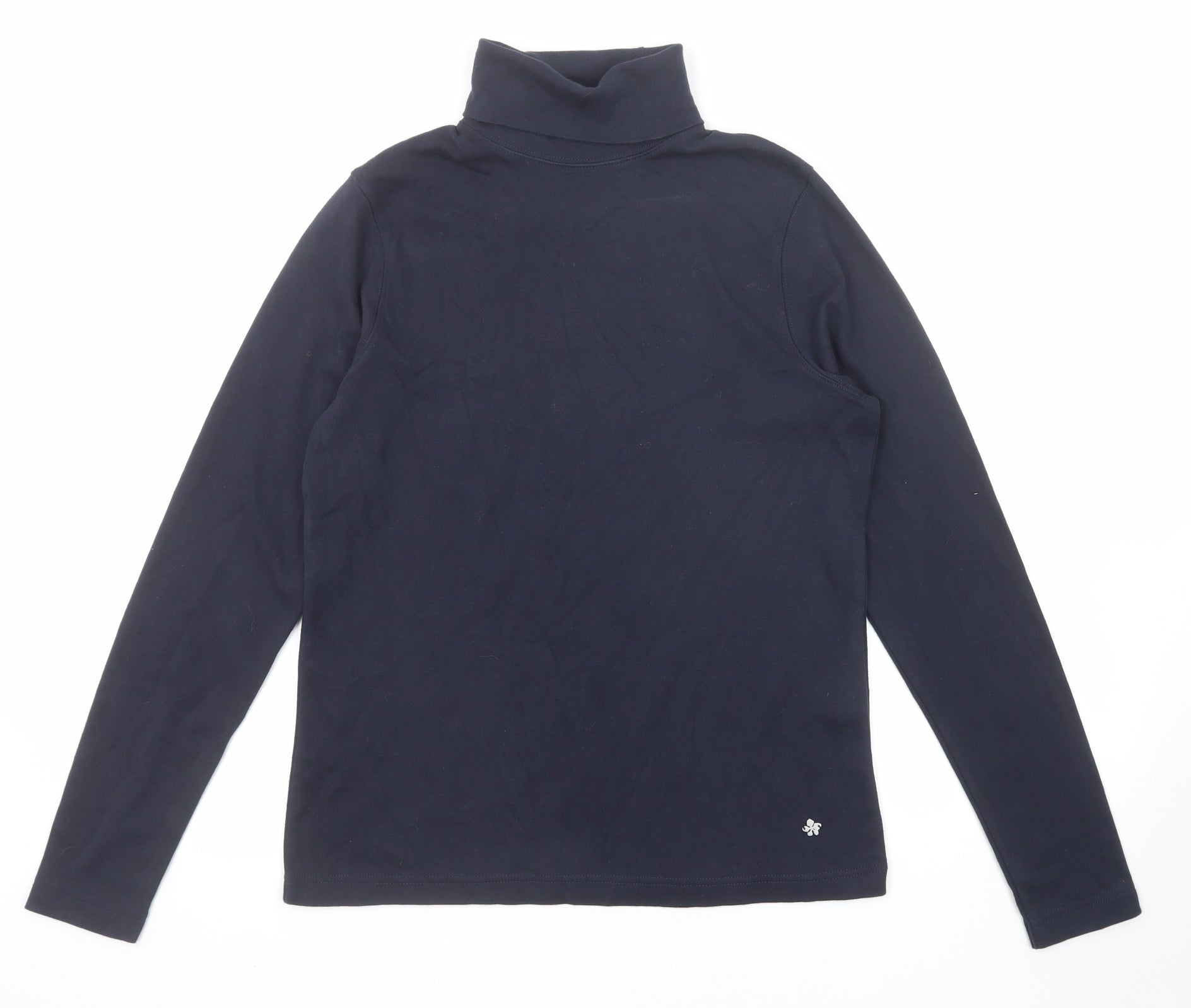 Womens Black Cotton Basic T-Shirt Size 10 Roll Neck