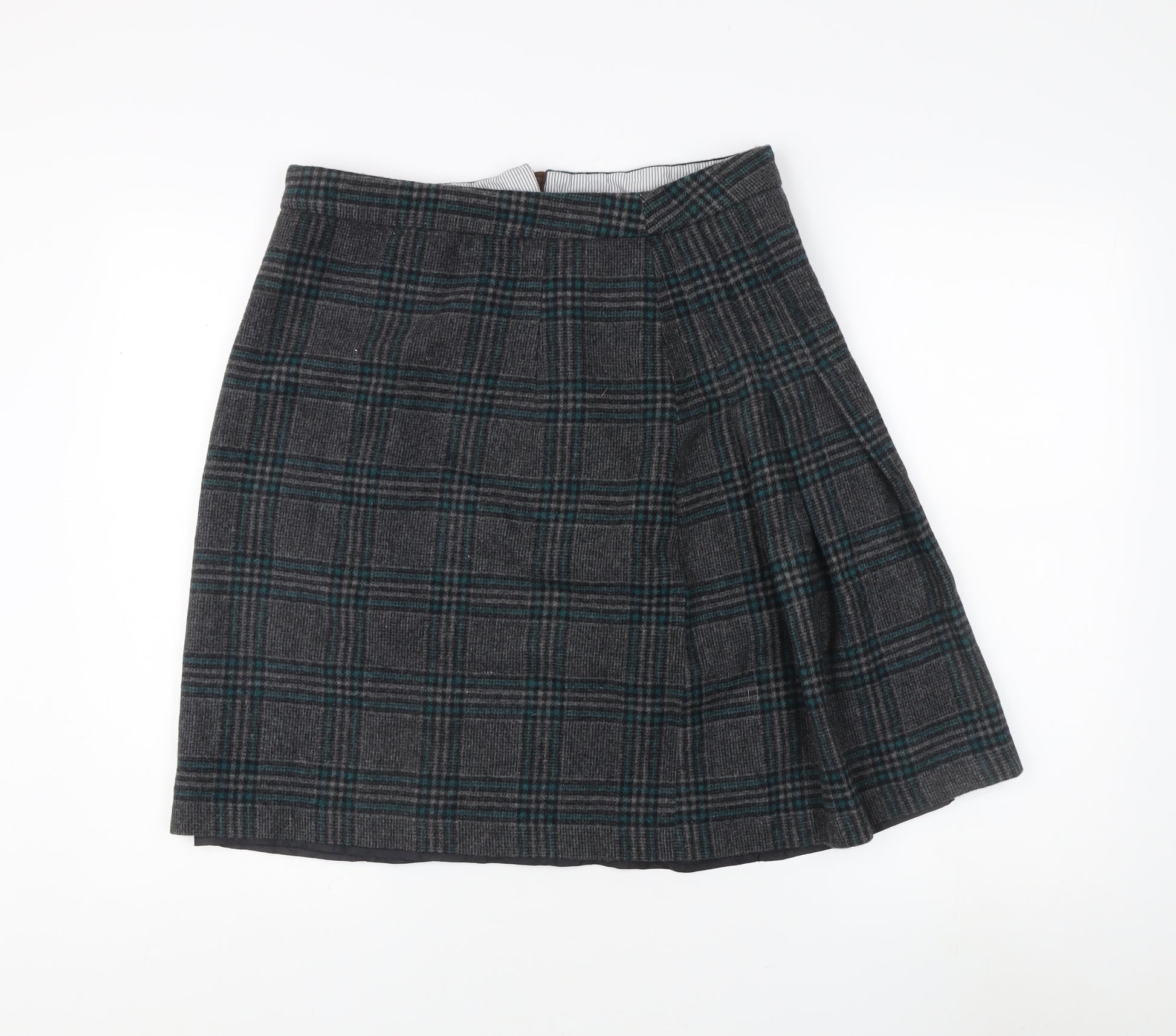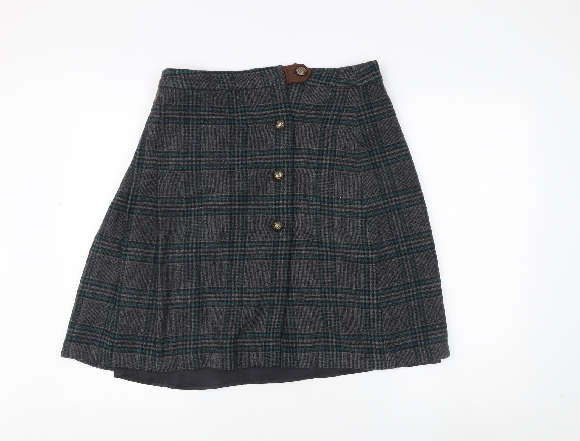 River Island Womens Grey Check Short Skirt Size 12 Lined Button Detail