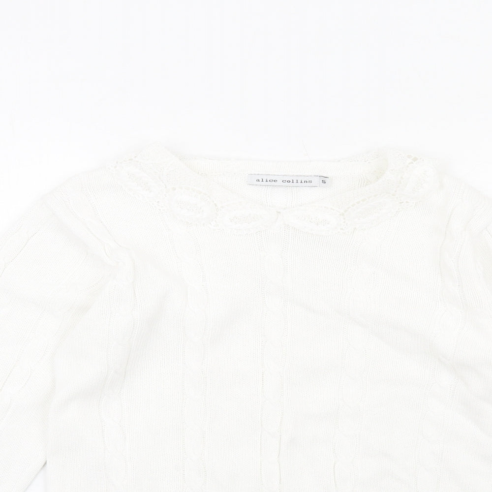 Womens White Crew Neck Cotton Pullover Jumper Size S