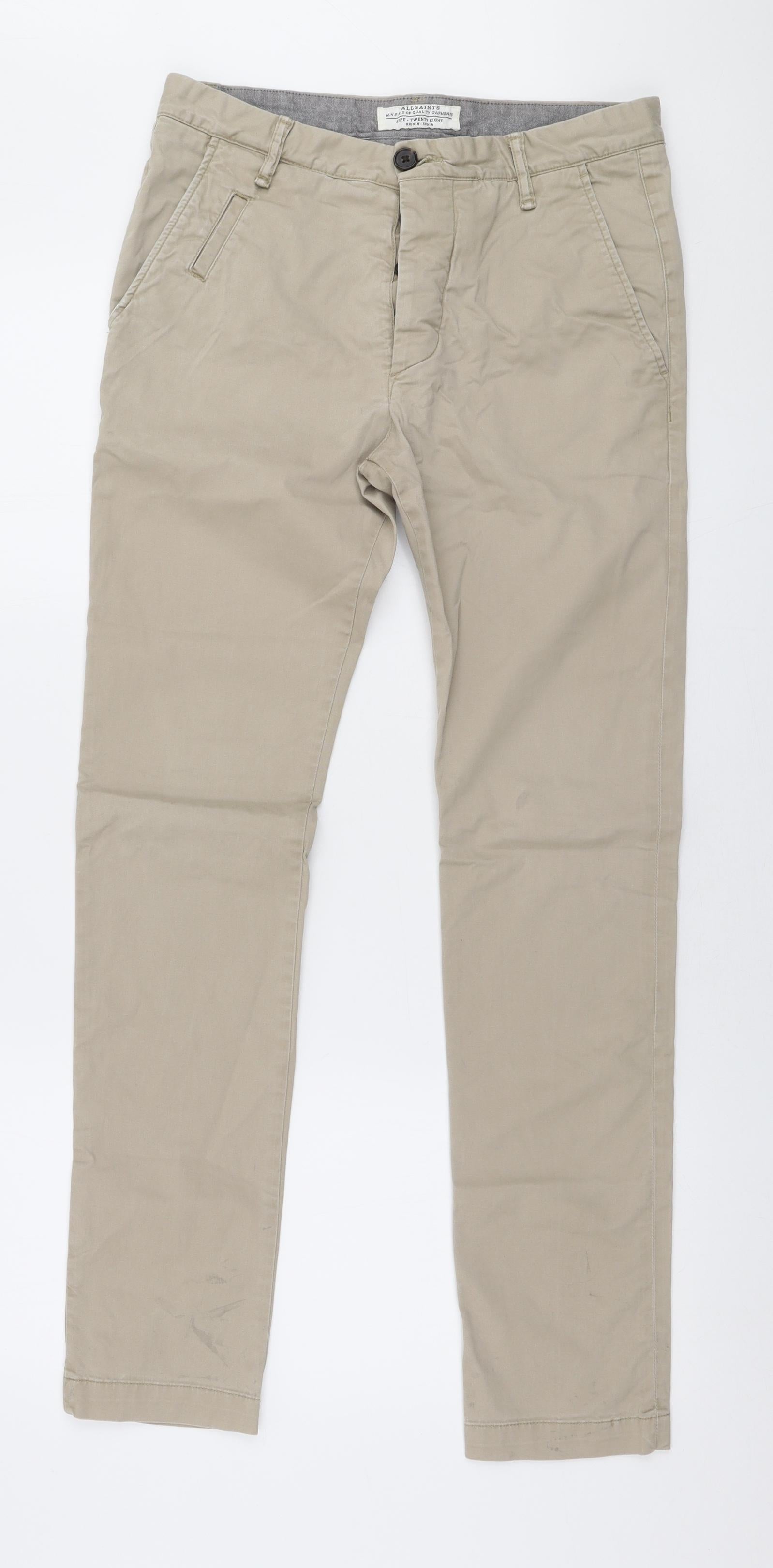 Mens Beige Cotton Chino Trousers Size 28 in L30 in Slim Button