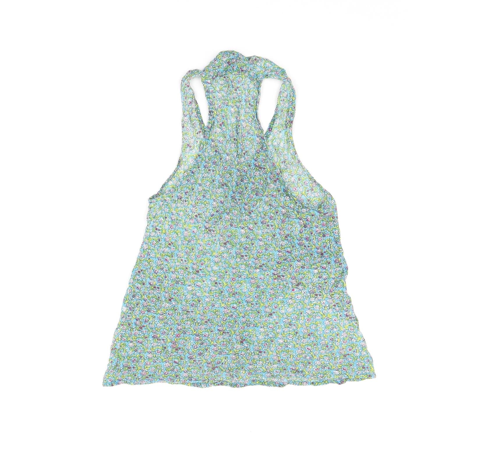 Womens Blue Floral Cotton Basic Tank Size S V-Neck