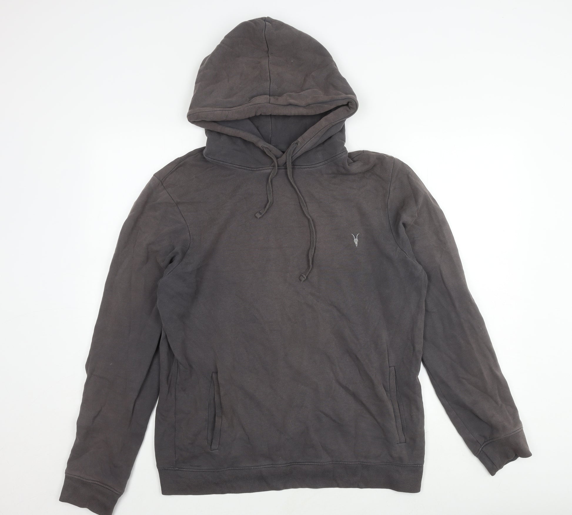 AllSaints Men's Grey Pullover Hoodie Medium Cotton Blend