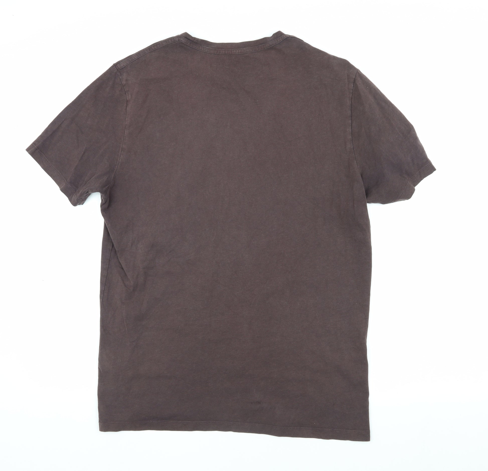 Discover this stylish AllSaints men's T-shirt, a perfect blend of casual and chic. Crafted from premium 100% cotton, this shirt offers a comfortable and breathable wear for all seasons. The earthy brown shade complements any wardrobe, providing a versatile look that can be dressed up or down. Featuring a classic crew neck and short sleeves, it ensures a relaxed fit suitable for everyday use. The solid pattern and jersey fabric make it a timeless piece, ideal for pairing with jeans or chinos. While the condition is excellent, there are slight signs of wear, adding a touch of character to its overall appeal. Elevate your fashion game with this essential tee, coveted for its understated elegance and quality craftsmanship. Embrace the opportunity to own a piece from a reputable brand known for its unique style and attention to detail.