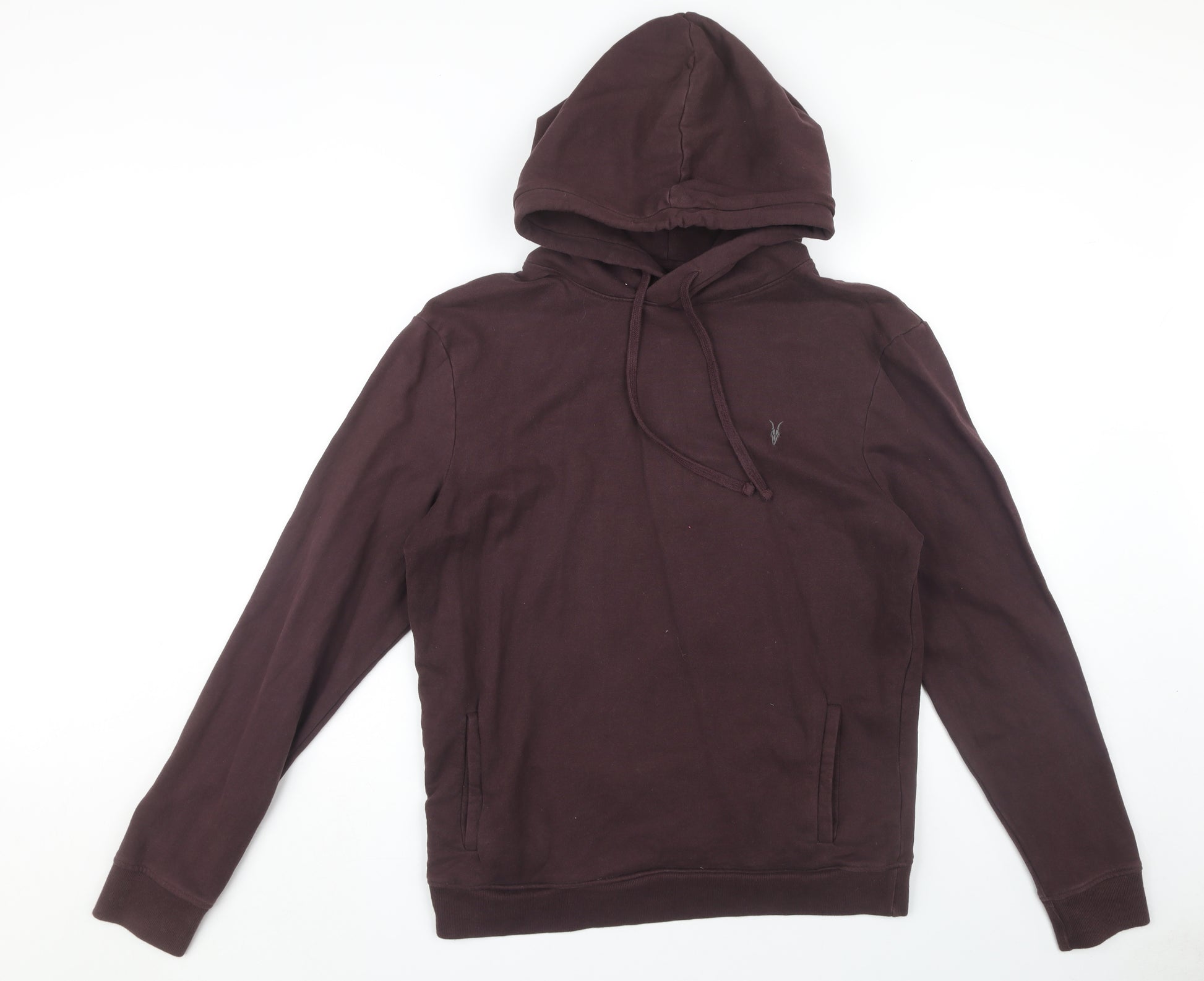 Elevate your casual wardrobe with this AllSaints Men's Pullover Hoodie. Crafted in a rich brown hue, this classic hoodie offers a sophisticated take on comfort and style. Perfect for the cooler months of autumn and winter, the hoodie is made from 100% cotton, providing a soft and breathable finish. The regular fit and long sleeves add to its comfortable wear, while the hooded design with a drawstring closure offers added warmth. Embellished with a subtle logo accent, this hoodie exudes understated elegance. Featuring a crew neckline and functional pockets, it strikes the perfect balance between style and practicality. Whether you're lounging at home or heading out, this hoodie is the ideal choice. The machine washable design ensures easy care, making it a hassle-free staple in your wardrobe. Suitable for a variety of occasions, this versatile piece can be effortlessly paired with jeans or sweatpants for a laid-back look. Don't miss out on the opportunity to own this timeless piece from AllSaints – a brand renowned for its quality and style.