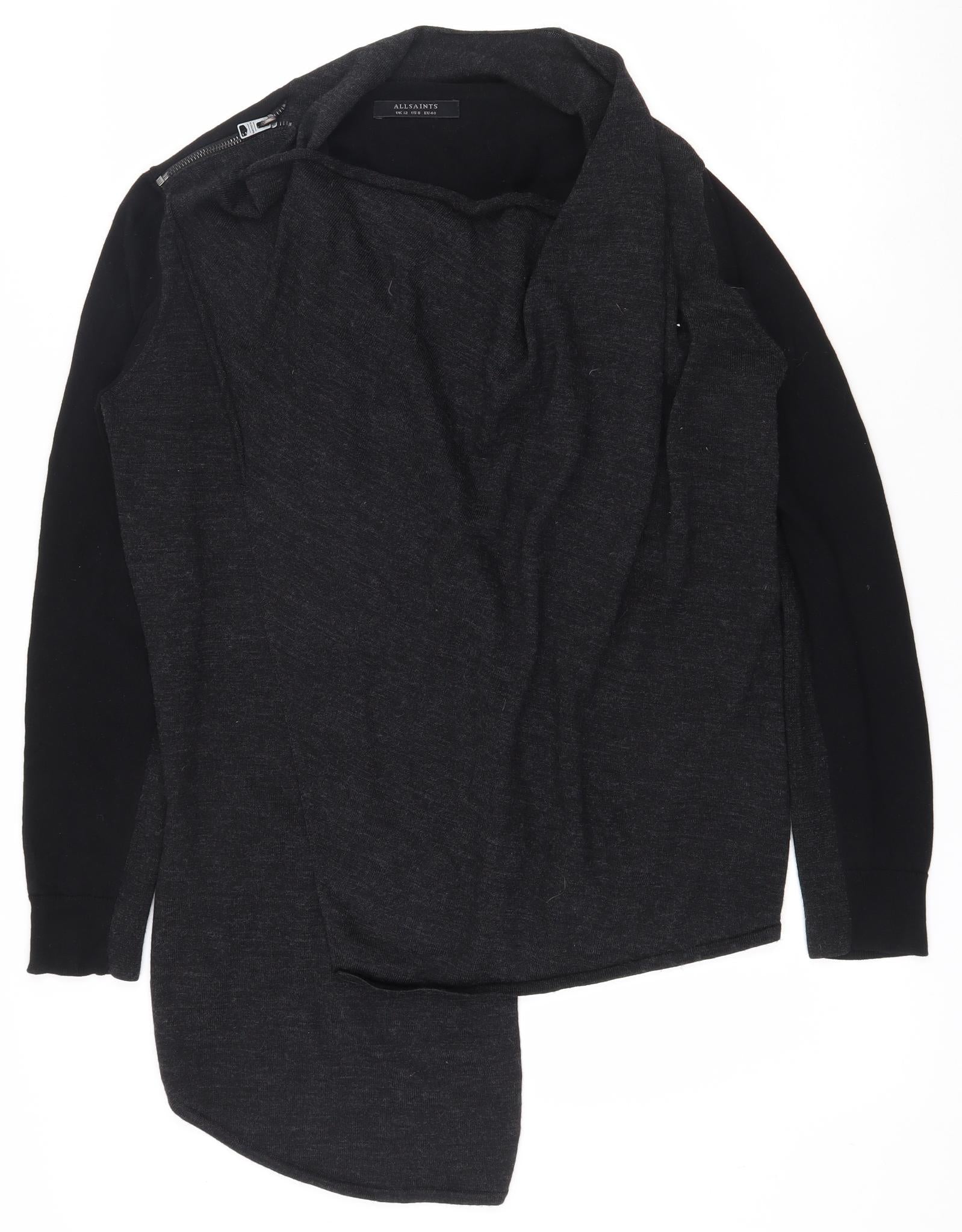 Womens Black Cowl Neck Wool Cardigan Jumper Size 12 - Aysemmetric