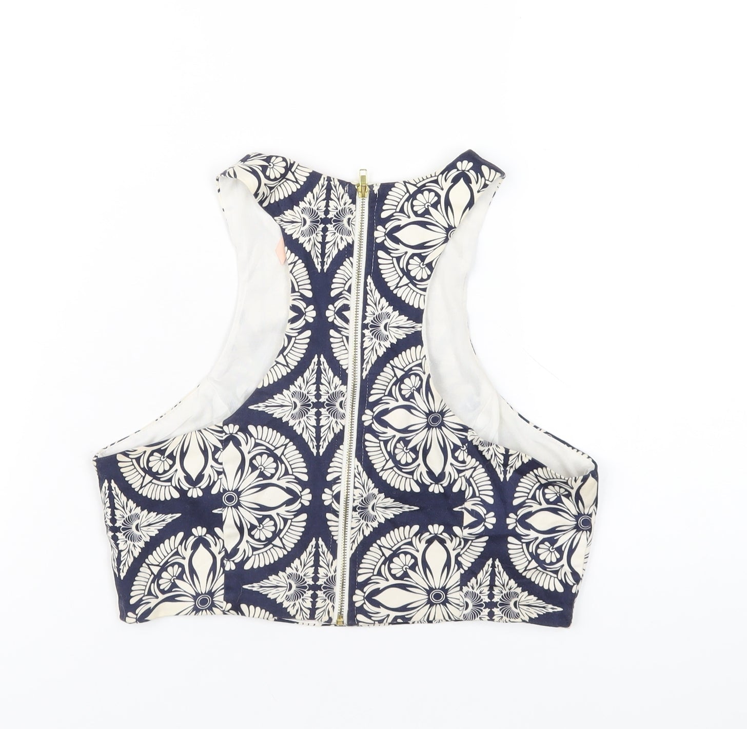 Womens Blue Geometric Cotton Basic Tank Size 12 Round Neck