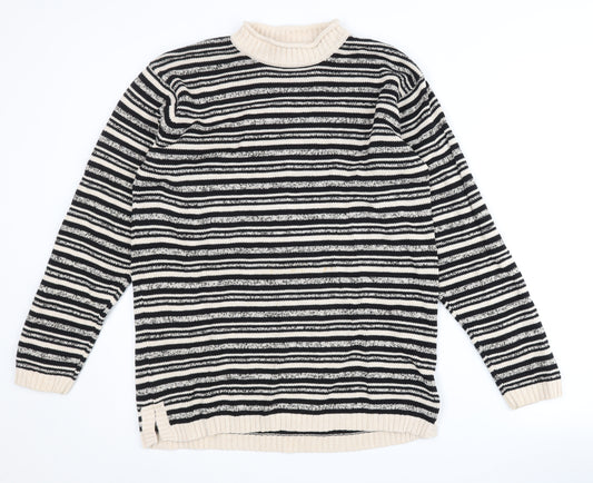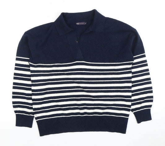Goose Collection Women Blue Striped Cotton Pullover Jumper Size M