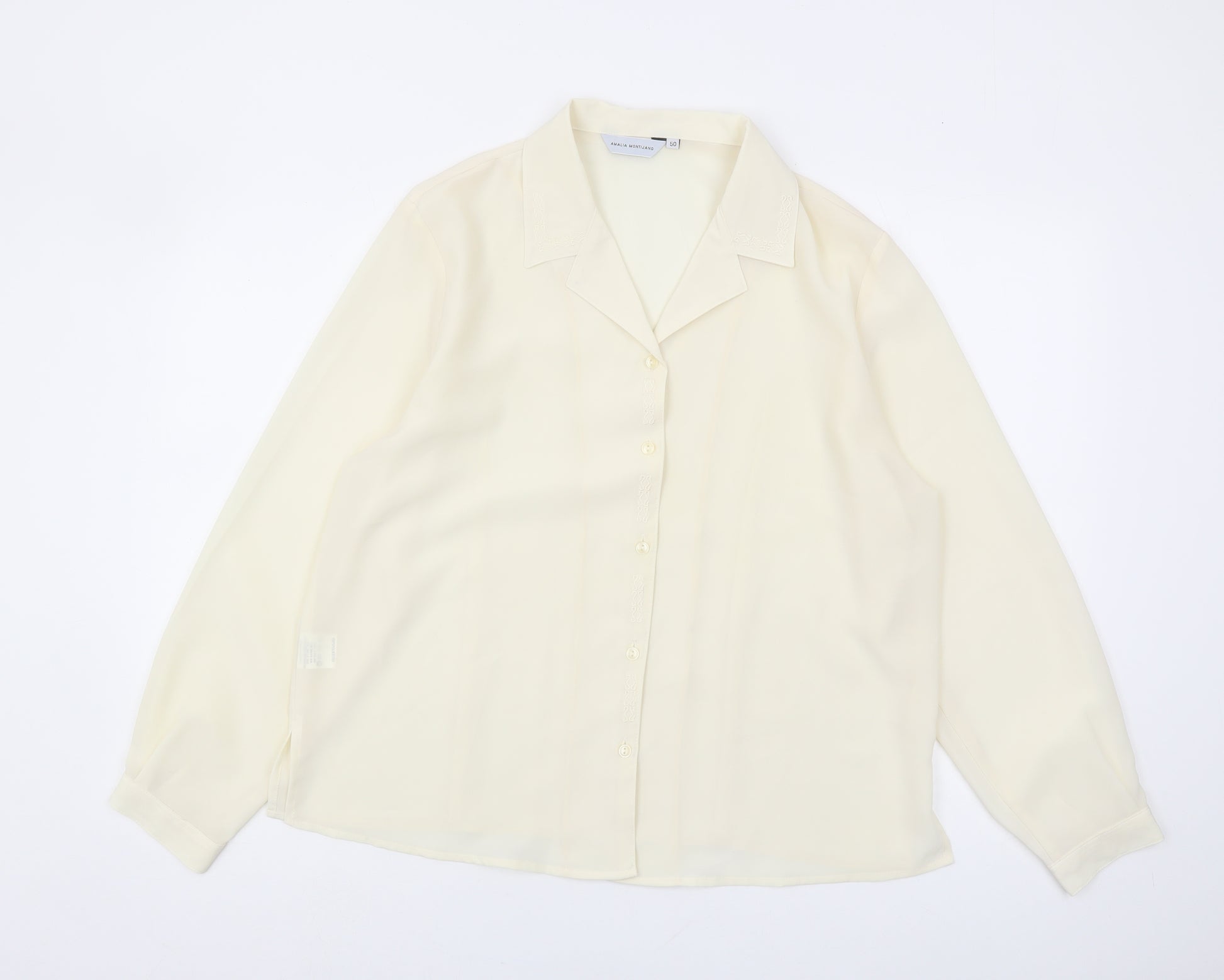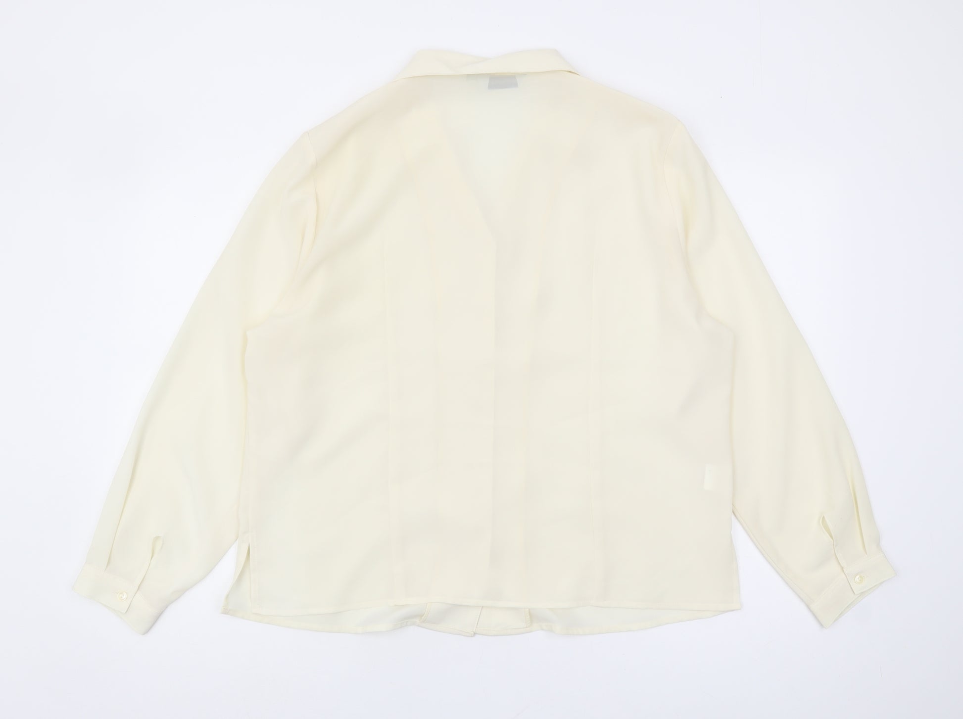 Elevate your wardrobe with this elegant Amalia Montijano blouse. Crafted for the discerning woman, this ivory blouse is perfect for any occasion, whether you're headed to a business meeting or a casual day out. Tailored in a size 22, it ensures a flattering fit for women who appreciate both comfort and style. The solid pattern and collared neckline add a touch of sophistication, making it a versatile staple in your collection. With long sleeves and a classic button closure, this blouse offers a timeless appeal. Ideal for all seasons, it seamlessly blends with your favourite accessories. Don't miss out on this stylish piece that promises to enhance your look and captivate attention.