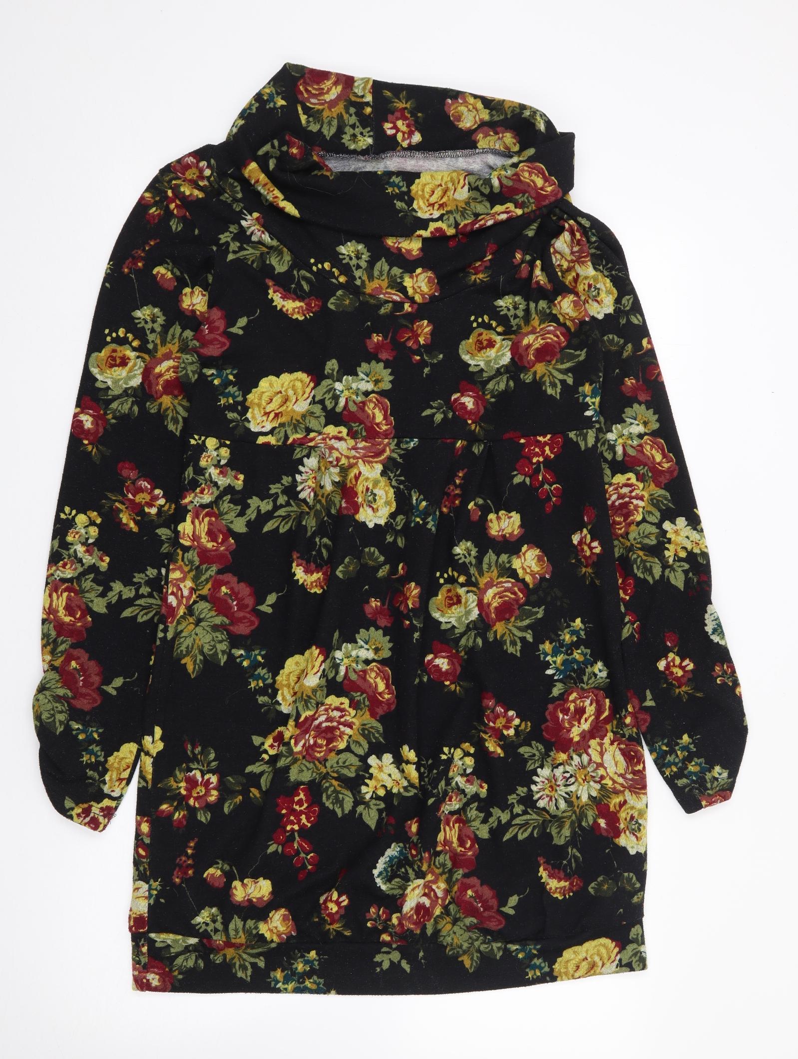 Womens Multicoloured Floral Polyester Shift Size M Roll Neck Pullover