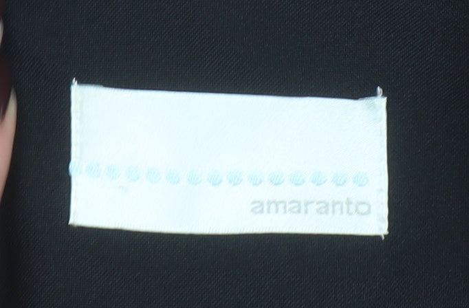 Elevate your professional wardrobe with this elegant black blazer from Amaranto, designed in a timeless single-breasted silhouette with refined tailoring for a flawless fit. Perfect for women seeking polished sophistication for the office, business meetings, or formal occasions, this jacket in UK size 16 is a versatile staple that exudes professionalism. Crafted from 100% polyester with a smooth woven finish, the blazer offers durability and comfort while maintaining a sleek and structured appearance. The soft maroon polyester lining adds a touch of contrast and comfort, making it ideal for all-day wear during cooler seasons such as autumn, winter, and spring. Featuring a classic notch lapel, two-button front fastening, and long sleeves, the blazer is both functional and fashionable, designed to pair effortlessly with trousers or skirts for a coordinated business look. The tailored fit ensures it drapes elegantly to enhance your natural shape without compromising on comfort. Its regular jacket length and minimalist aesthetic make it a versatile piece that transitions seamlessly from boardroom meetings to evening events. The garment is easy to maintain as it is machine washable and drip-dry friendly, making it practical for everyday professional use. With no visible flaws or damage, this blazer remains in excellent pre-owned condition with only light signs of previous wear, ensuring great value for those looking to enhance their collection with a reliable and stylish piece. Whether paired with smart trousers for a trouser suit ensemble or layered over a crisp blouse, this Amaranto black blazer provides timeless appeal and professional poise. A fantastic addition to any wardrobe seeking a balance of comfort, durability, and sophistication, this jacket embodies understated elegance ideal for the modern professional woman looking for both form and function.