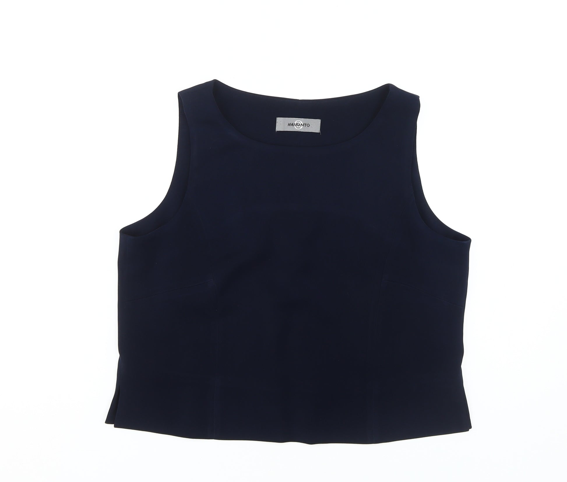 Discover effortless elegance with the AMARANTO Women's Blue Tank. Crafted in a sleek and sophisticated design, this tank top offers a timeless solid blue colour, making it a versatile addition to any wardrobe. Made from premium 100% polyester, it promises long-lasting wear and comfort, perfect for all-day styling. The sleeveless design allows for easy layering and a breezy feel, ideal for warmer days or pairing under jackets and cardigans. Featuring a convenient zip closure at the back, this tank offers a snug fit and an understated crew neckline that adds a touch of class to any ensemble. Whether worn casually with jeans or dressed up with a skirt for a night out, this top is an essential piece for any fashion-conscious woman. Suitable for machine washing, it ensures easy care without compromising on style. In excellent condition, this gently used tank shows no signs of wear, offering a like-new appearance and ensuring complete satisfaction. Priced competitively, it represents the perfect blend of style, comfort, and value. Add a splash of elegance to your wardrobe today with this versatile AMARANTO tank top.