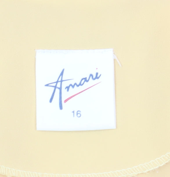 Elevate your casual wardrobe with this charming Amari Women's Button-Up Top in a refreshing shade of yellow. Perfectly tailored for women, this top boasts a relaxed short sleeve design, ideal for those warm, sunny days. The top features a round neckline and a stylish button accent that adds a subtle yet elegant touch. Made entirely from polyester, the fabric ensures a lightweight and breezy feel, offering both comfort and style. Whether paired with jeans for a day out or with a skirt for a lunch date, this top serves as a versatile piece for various occasions. Enjoy the ease of care with its machine washable material. In excellent condition, this piece comes with no visible signs of wear, making it a delightful addition to your collection.