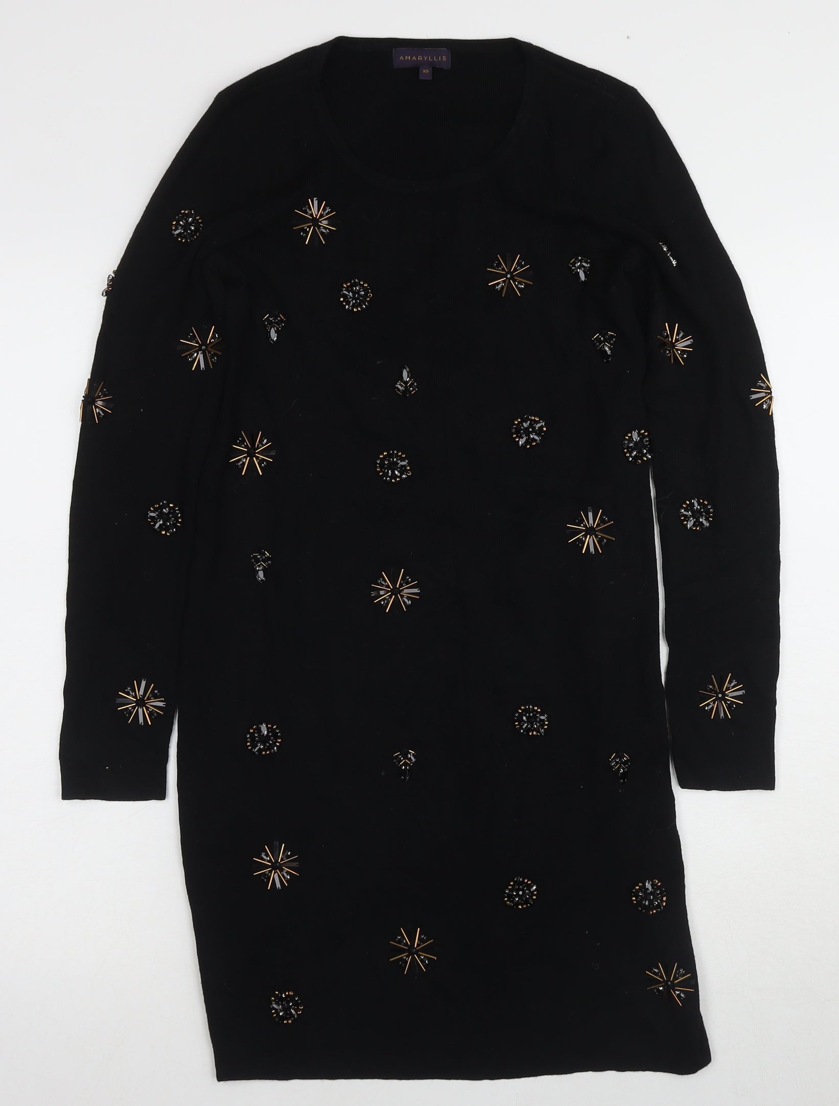AMARYLLIS Women's Black Beaded Shift Dress XS
