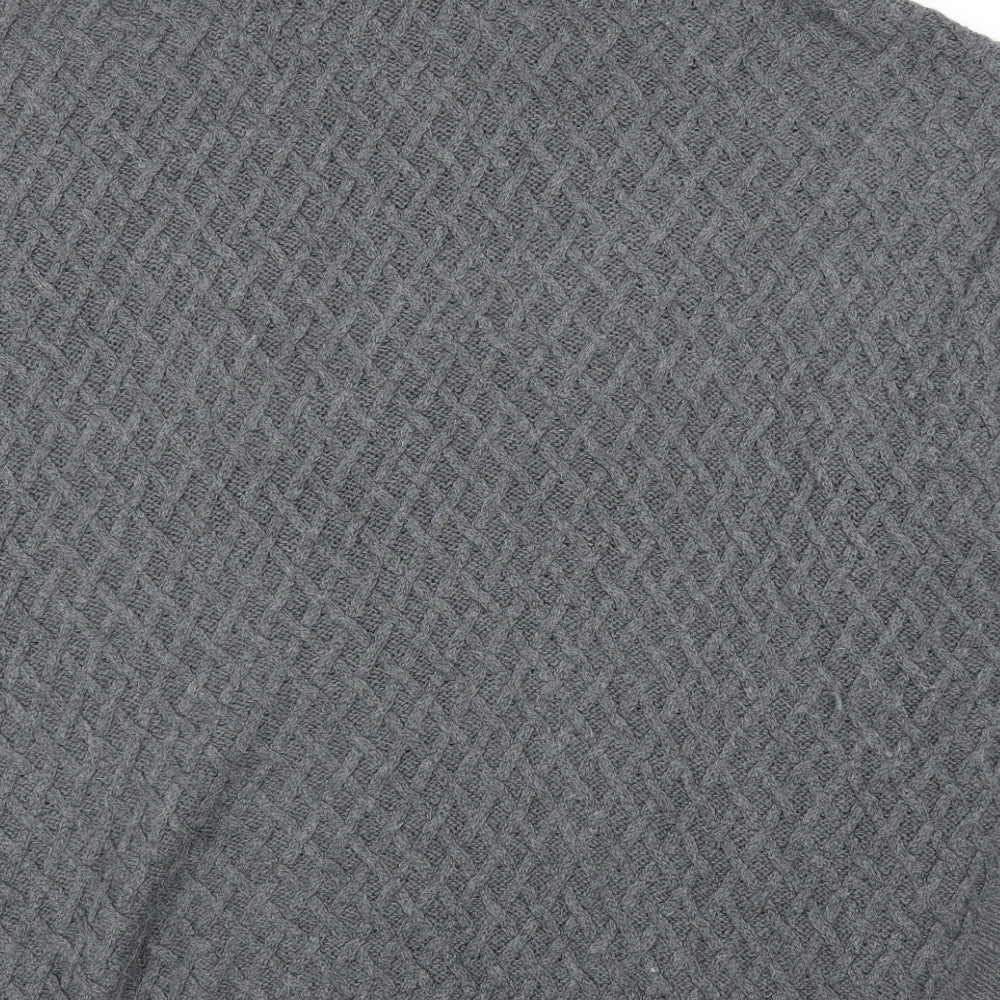 Klass Collection Women Grey Cable-Knit Roll Neck Short Sleeve Jumper M