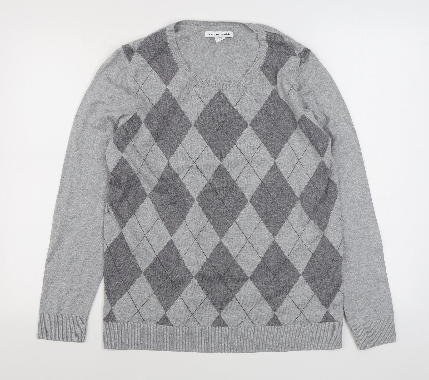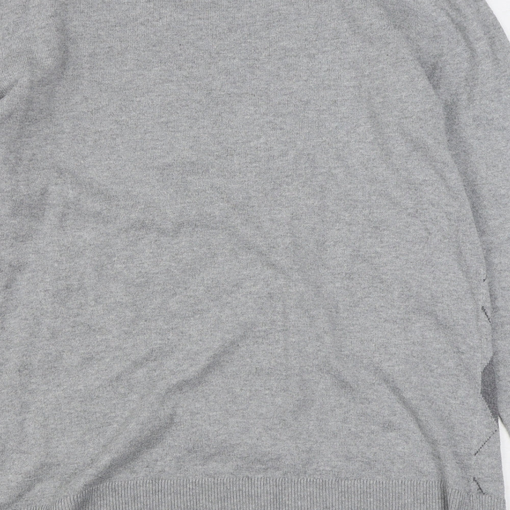 Mens Grey Round Neck Argyle/Diamond Cotton Pullover Jumper Size L