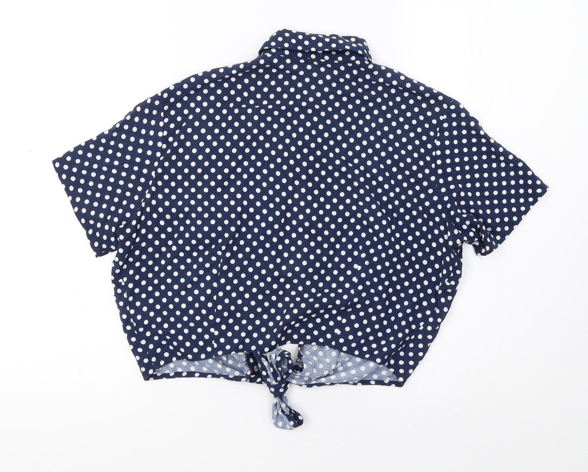 Womens Blue Polka Dot Cropped Button-Up Size S