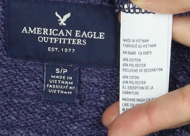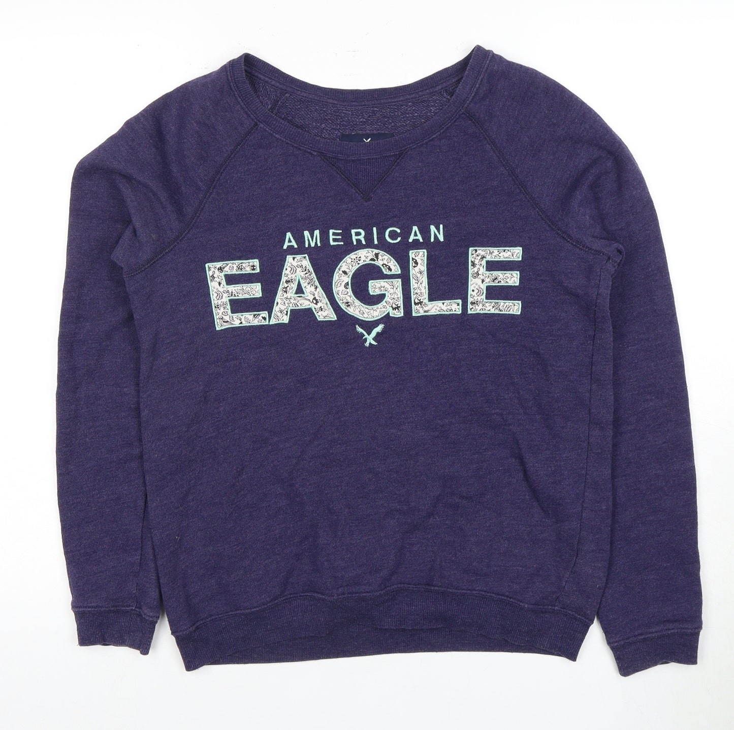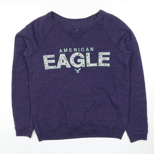 Enhance your casual wardrobe with this stylish American Eagle sweatshirt, perfect for both comfort and fashion. Crafted from a soft knit fabric, this pullover design offers a relaxed fit for ultimate ease of wear. The rich purple hue paired with a bold 'American Eagle' logo adds a touch of modern flair, making it a versatile piece for any casual outing.Constructed from a blend of cotton and polyester, this sweatshirt ensures durability and softness. Its long sleeves and crew neck design make it ideal for layering during cooler months or worn alone for relaxed spring days. The graphic print pattern offers an eye-catching look, setting you apart in a crowd.Designed for men, this sweatshirt is perfect for those who appreciate comfort without compromising style. It's suitable for a range of activities, from lounging at home to casual outings with friends. The regular fit provides a classic silhouette while the material's breathability promises all-day comfort.Easy to care for, this sweatshirt is machine washable, making it an ideal choice for everyday wear. Its excellent condition ensures you'll look sharp without visible signs of wear, providing great value for money. Available in size S, this piece is a must-have staple for any fashion-conscious individual's wardrobe.