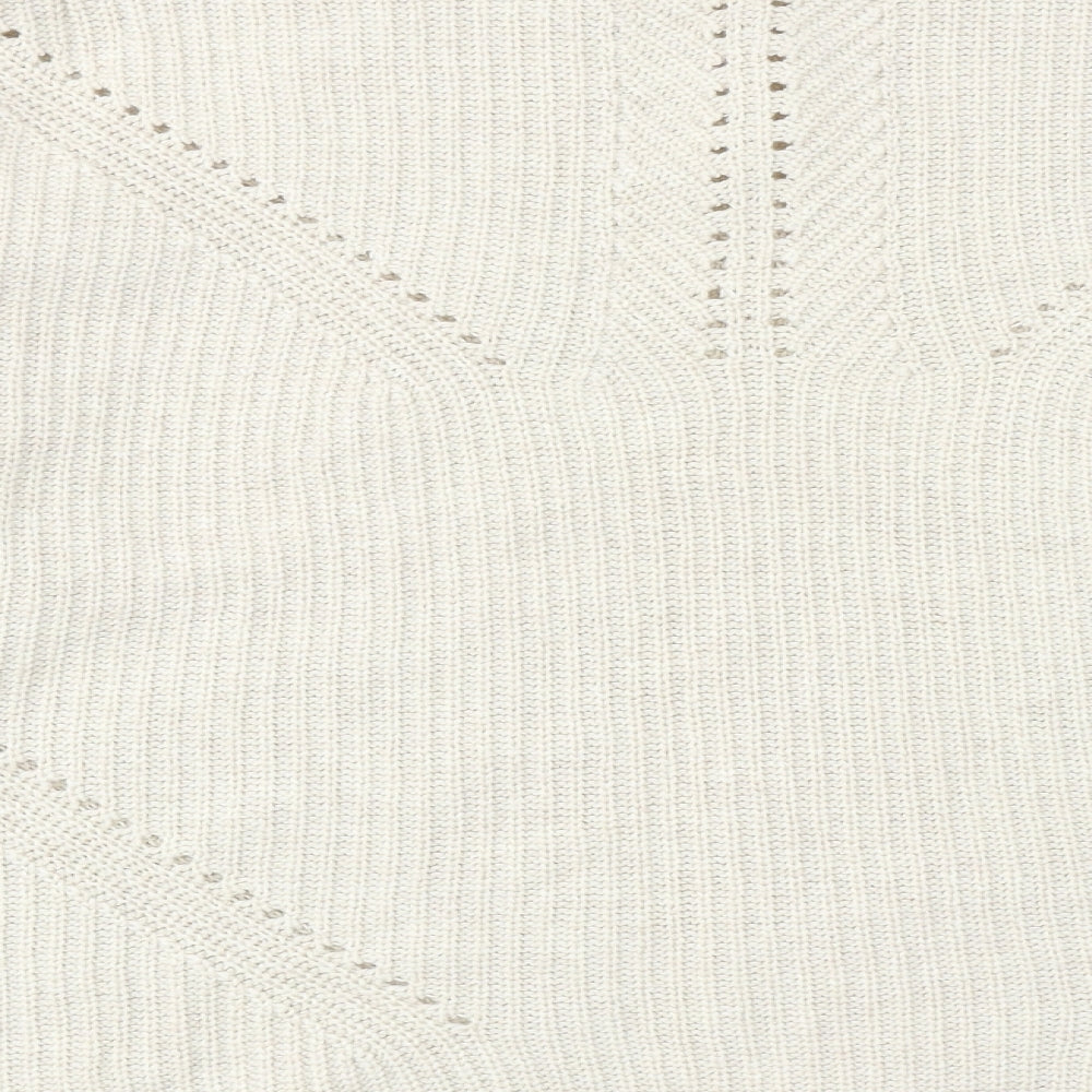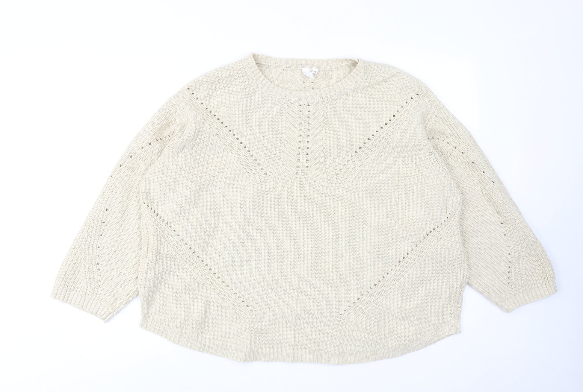 Womens Beige Round Neck Acrylic Pullover Jumper Size 14
