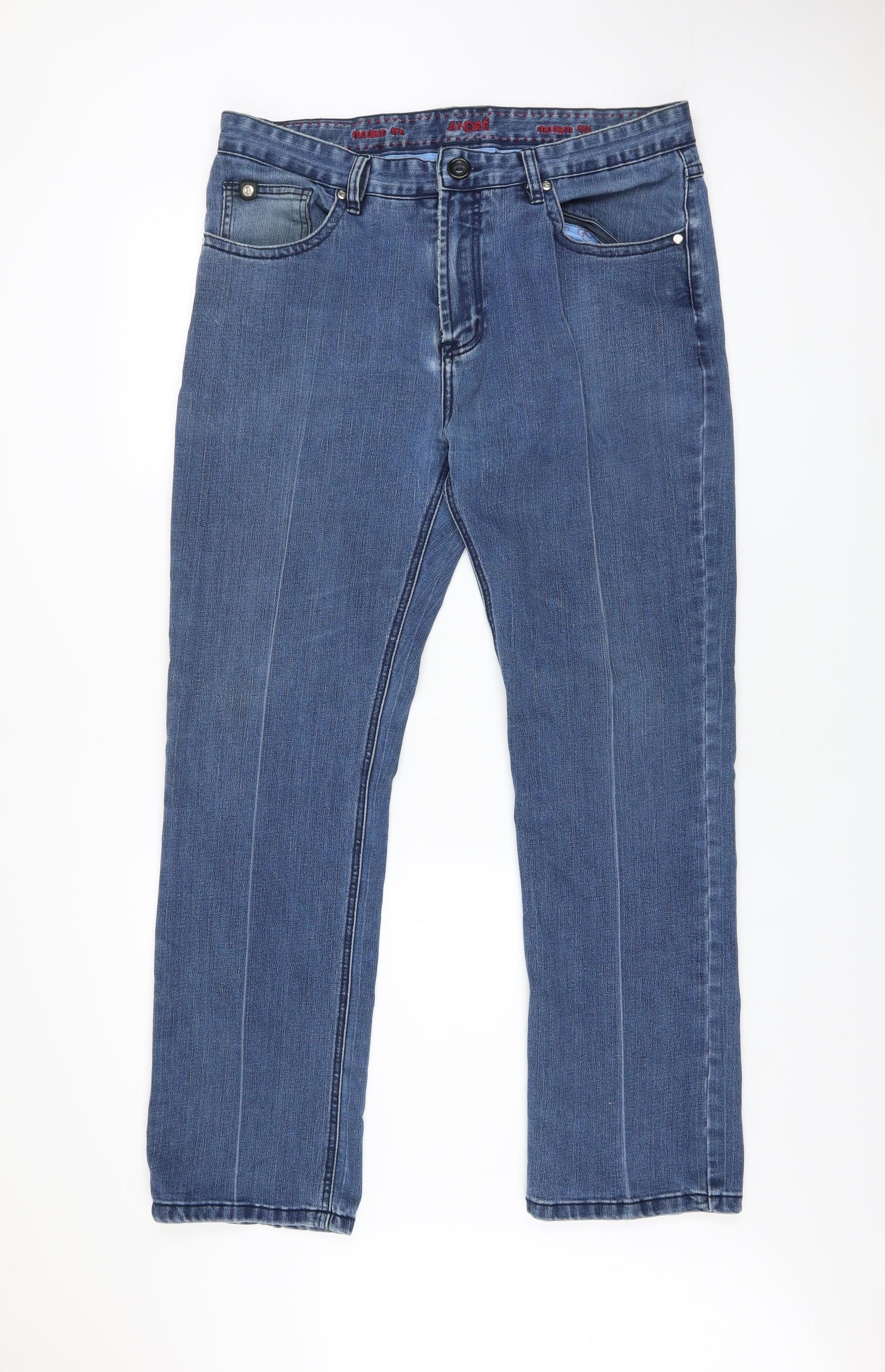 Men’s Blue Straight Jeans 38/32 Stretch Cotton Denim