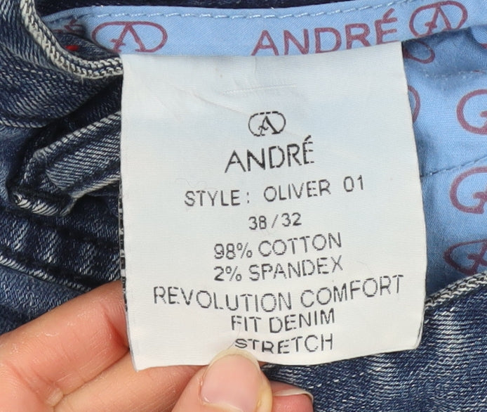These André men’s jeans in the ‘Oliver 01’ style offer the perfect combination of comfort, durability, and timeless style. Crafted from a premium blend of 98% cotton and 2% elastodiene (spandex), they provide a soft feel and slight stretch for all-day wear. The blue medium wash gives them a versatile look, ideal for casual weekends, relaxed outings, or smart-casual occasions. With their classic straight-leg silhouette, these jeans ensure a clean, flattering fit that complements a variety of body types. Featuring a traditional 5-pocket design, button closure, and belt loops, they balance practicality with understated style. The comfortable regular fit and mid-rise waist make them suitable for a relaxed yet tailored look, while the durable stitching and stretch denim offer flexibility and longevity. Designed for modern men who value comfort as much as appearance, these jeans deliver a reliable wardrobe essential that pairs easily with shirts, polos, or casual tees. Perfectly suitable for year-round wear, they are machine washable for easy care. Light wear indicates these jeans remain in excellent condition, offering great quality and value. Whether for work, weekend casuals, or a night out, these André stretch cotton denim jeans are a smart pick that embodies effortless confidence and versatility.