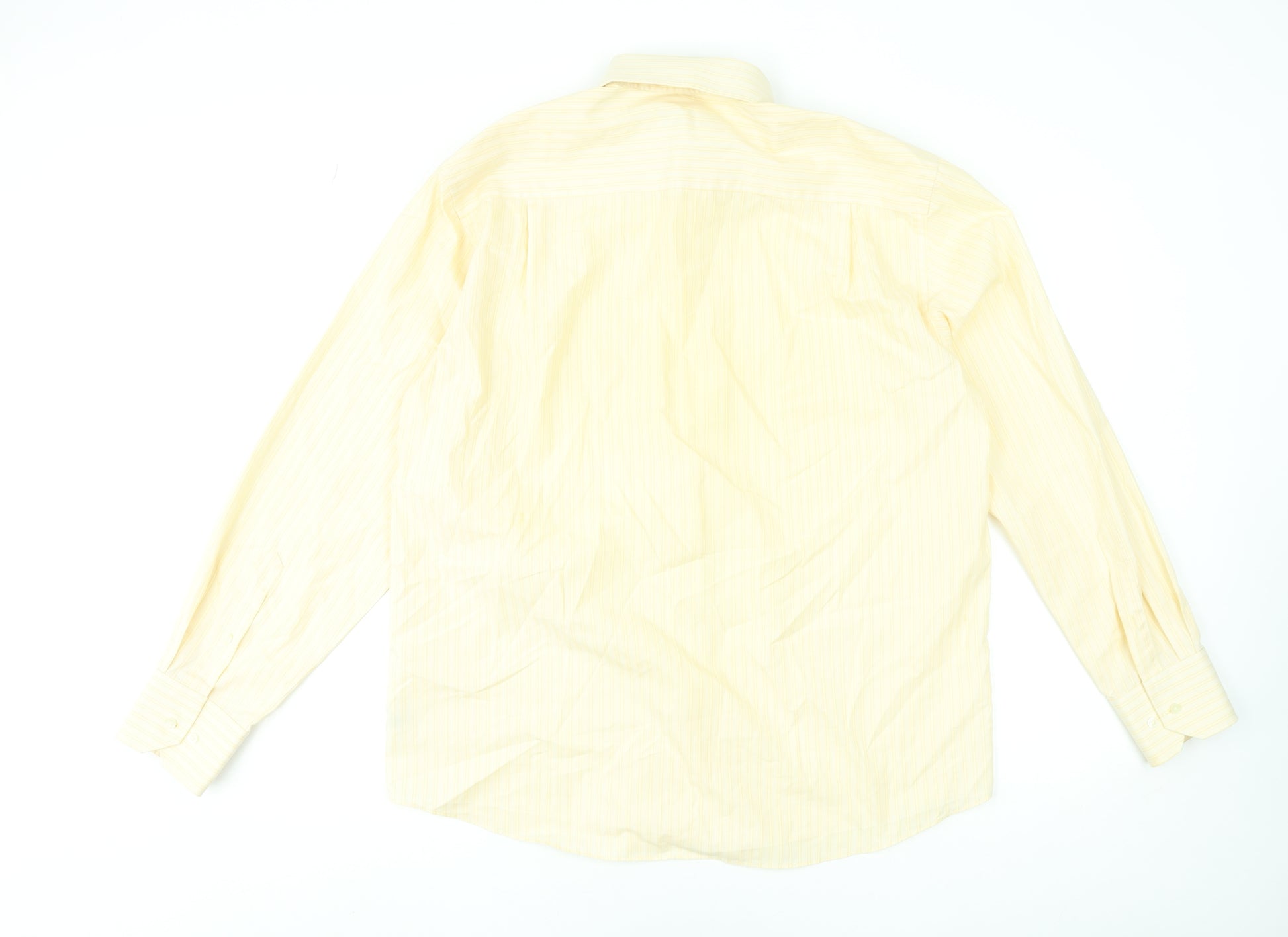Men's Yellow Striped Long Sleeve Formal Dress Shirt 16.5in 42in Cotton
