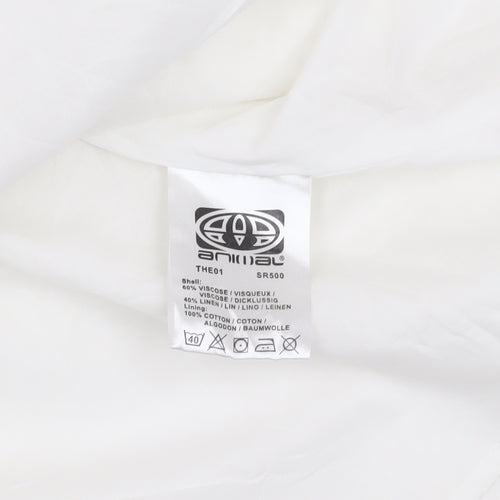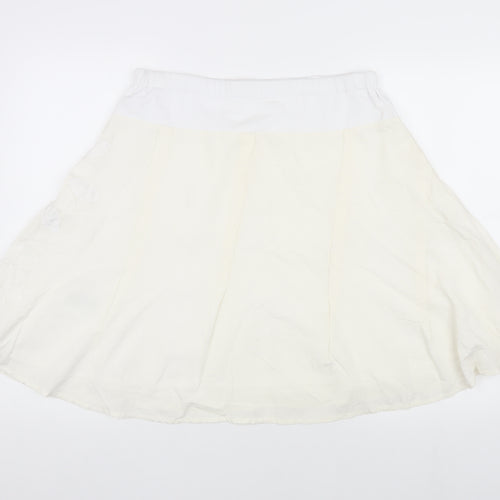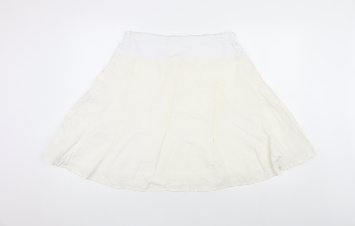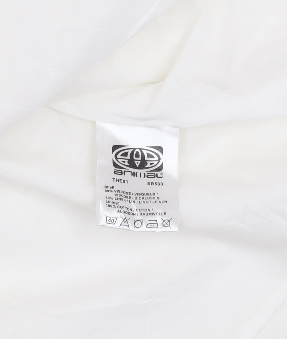 Elevate your summer wardrobe with this elegant ivory flare skirt by Animal. Perfectly designed for women, this skirt features a knee-length cut that delivers both comfort and style. Crafted with a breathable blend of 60% viscose and 40% linen, the skirt offers a soft and lightweight feel, making it an idyllic choice for casual outings during warmer months. The skirt is distinguished by its refined embroidered accents, adding a touch of sophistication and charm to your look. Its elastic waist ensures a comfortable fit, adapting effortlessly to your natural silhouette. With a mid-rise waist, it provides a flattering shape and pairs exquisitely well with your favourite tops and blouses. Machine washable and easy to care for, this skirt is both practical and stylish. Though listed in excellent condition, minor wear is noted; however, it remains in perfect shape for a variety of occasions. Ideal for casual day outs or relaxed gatherings, this skirt promises to be a versatile addition to your collection. Add an element of elegance and brighten up your closet with this unique piece that encapsulates grace and comfort effortlessly.