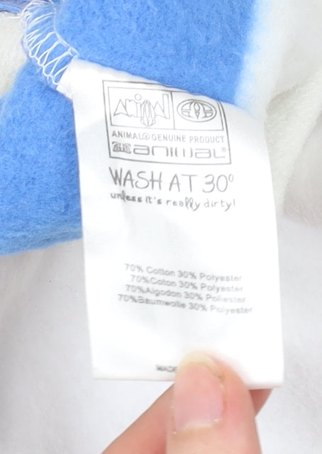 Add a splash of vibrant style to your casual wardrobe with this Animal women’s multicoloured striped sweatshirt in size 10. Crafted from a durable yet soft blend of 70% cotton and 30% polyester, this sweatshirt is ideal for everyday wear, offering both comfort and breathability. The bold horizontal stripes in blue, pink, yellow, green, and white create a lively and youthful appearance, perfect for bringing colour to relaxed outfits. The design features a Henley neckline with a button closure for added detail, along with long sleeves for extra warmth during cooler seasons. Practical elements such as front pockets add functionality, making it both stylish and versatile for running errands, casual outings, or simply lounging. The regular fit ensures comfort whilst maintaining a flattering silhouette, while the colourful Animal logo accent neatly embroidered on the front chest adds subtle brand recognition. This piece is lightweight yet warm, making it suitable to wear across multiple seasons, particularly spring and autumn. The fun, colourful theme ensures it’s an easy option to pair with jeans, skirts, or casual trousers for a laid-back but eye-catching look. Machine washable and low-maintenance, it’s a practical addition to your everyday wardrobe. In very good condition with light signs of wear, this sweatshirt remains in great shape with no flaws affecting its wearability. It represents excellent value, offering high-quality construction and stylish design from the trusted brand Animal. A perfect choice for someone seeking a playful and comfortable casual sweatshirt that stands out from the ordinary.