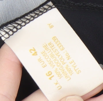 Introducing the Ann Harvey Women's Black Floral Viscose Blouse in Size 16, a timeless piece perfect for your wardrobe. Crafted carefully from high-quality viscose, this blouse offers comfort and style. The elegant floral pattern brings a touch of sophistication, while the classic black colour makes it versatile for various occasions. Designed with short sleeves and a flattering V-neck, it complements your figure beautifully, providing a chic and polished look. The blouse features eye-catching rhinestones as accents, adding a subtle sparkle that enhances its elegance. Although pre-loved, it remains in very good condition, with only minor visible stains that do not detract from its overall charm. Ideal for casual outings or more formal settings, this blouse seamlessly adapts to your style needs. Whether paired with jeans for a relaxed afternoon or dressed up with tailored trousers, it promises to make a stylish statement. Add this attractive Ann Harvey blouse to your collection and enjoy its blend of comfort, quality, and elegance.