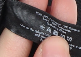 Elevate your wardrobe with this sleek Ann Summers Women's Black Lace Pencil Skirt. Tailored for style and comfort, this skirt is perfect for both casual outings and sophisticated events. Crafted with 90% polyester and 10% elastane, the main body ensures a comfortable fit while maintaining its form. The elegant lace detailing adds a touch of femininity, making it suitable for party or cocktail occasions. This knee-length skirt features a straight and pencil design that flatters all body types, paired with an elastic waist for an easy pull-on style. Hand wash only to maintain the delicate lace and ensure long-lasting wear. Its versatile black colour allows for endless styling options, whether paired with a chic top or a casual T-shirt. Ideal for women seeking a timeless yet modern piece, it caters to all seasons, providing endless wardrobe possibilities. In excellent condition with no visible flaws, this skirt is a must-have addition.