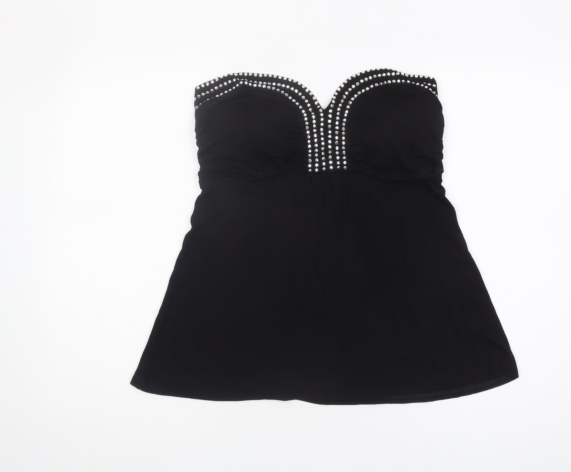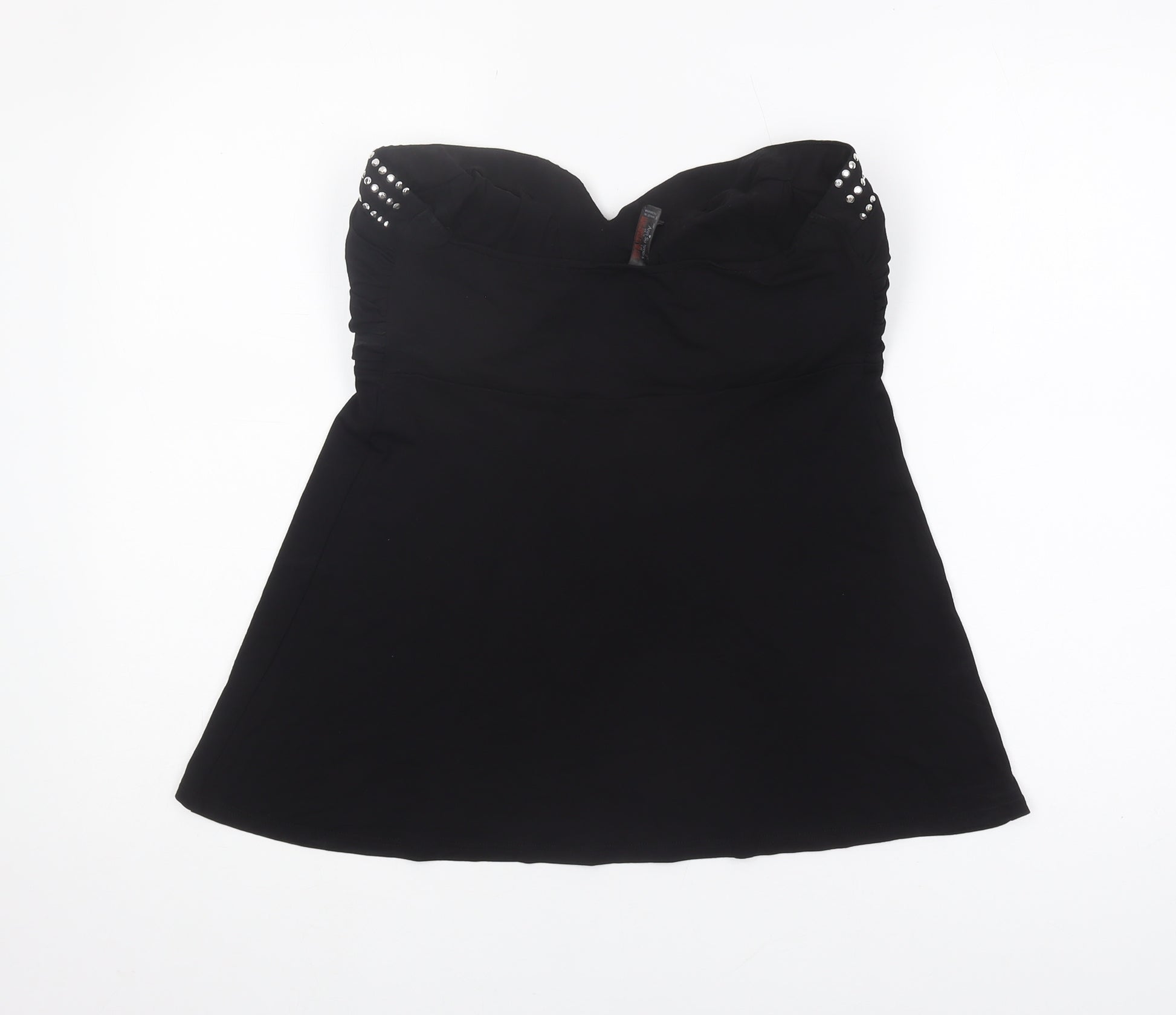 This stylish black strapless top from Ann Summers is perfect for any woman's wardrobe. Designed for a sleek look, it features eye-catching studded accents that add a touch of elegance and flair, making it suitable for various occasions, whether you're heading to a party or a casual outing. The top is tailored with a regular fit, ensuring comfort and style. Made with high-quality materials, even though specifics are not provided, you can expect the durability and comfort commonly associated with Ann Summers collections. Its solid black colour makes it a versatile piece that can easily be paired with different bottoms, whether you're looking to dress up or keep it casual. Ideal for those warm summer nights, this sleeveless top is a must-have addition for anyone looking to make a statement. Despite being pre-owned, this piece remains in excellent condition with no visible signs of wear, providing exceptional value for its price.