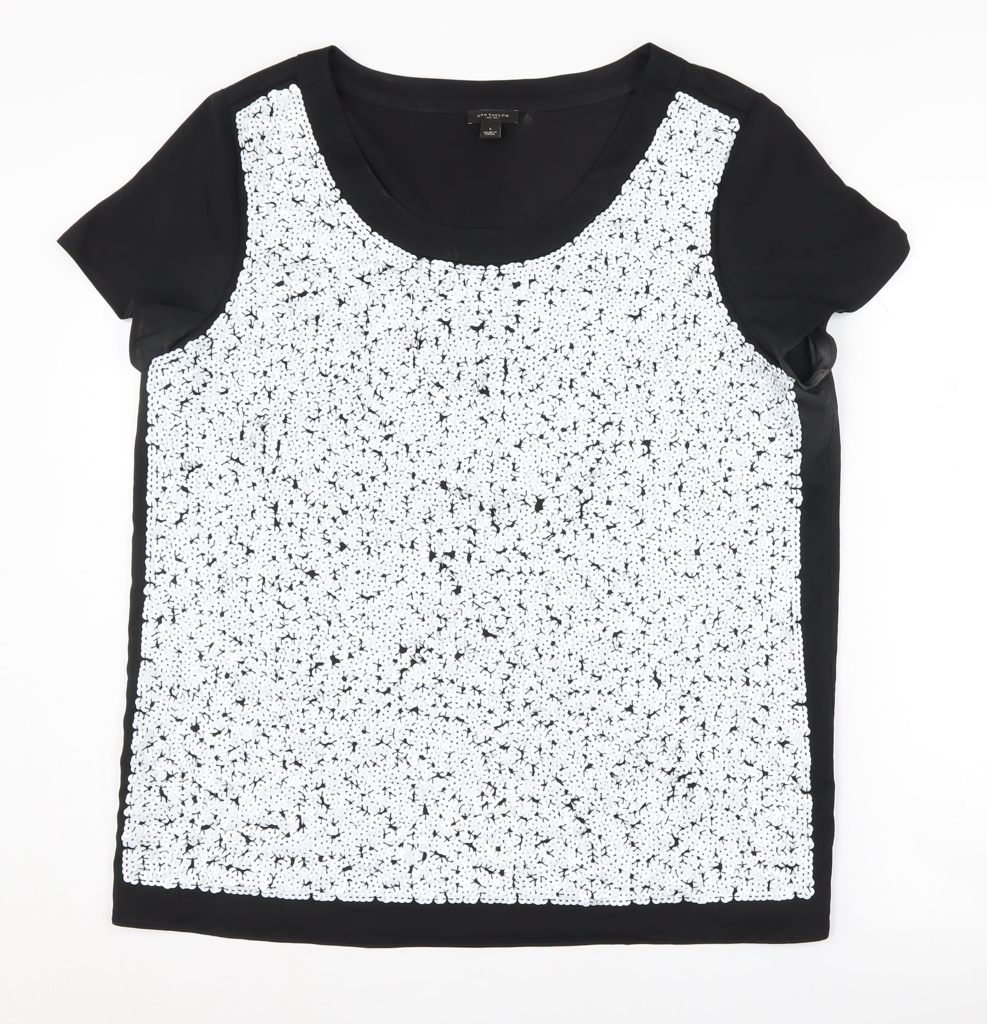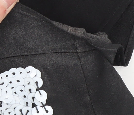 Step into elegance with this chic Ann Taylor black sequin T-shirt, perfect for adding a little sparkle to any outfit. Crafted for women in a regular size L, this top offers a comfortable and flattering fit for any body type. The classic round neckline and short sleeves make it versatile for both casual and party settings. Made from high-quality polyester, it promises durability and ease of care. The stunning sequin accents at the front capture attention, turning this simple black T-shirt into a statement piece. Ideal for a cocktail party or an evening out, it’s designed to add a touch of glamour to your wardrobe. Despite being pre-loved, it's in excellent condition with minimal wear, ensuring you enjoy a sophisticated look with every wear. Don't miss the chance to make this dazzling piece yours for a sparkly addition to your evening collection.