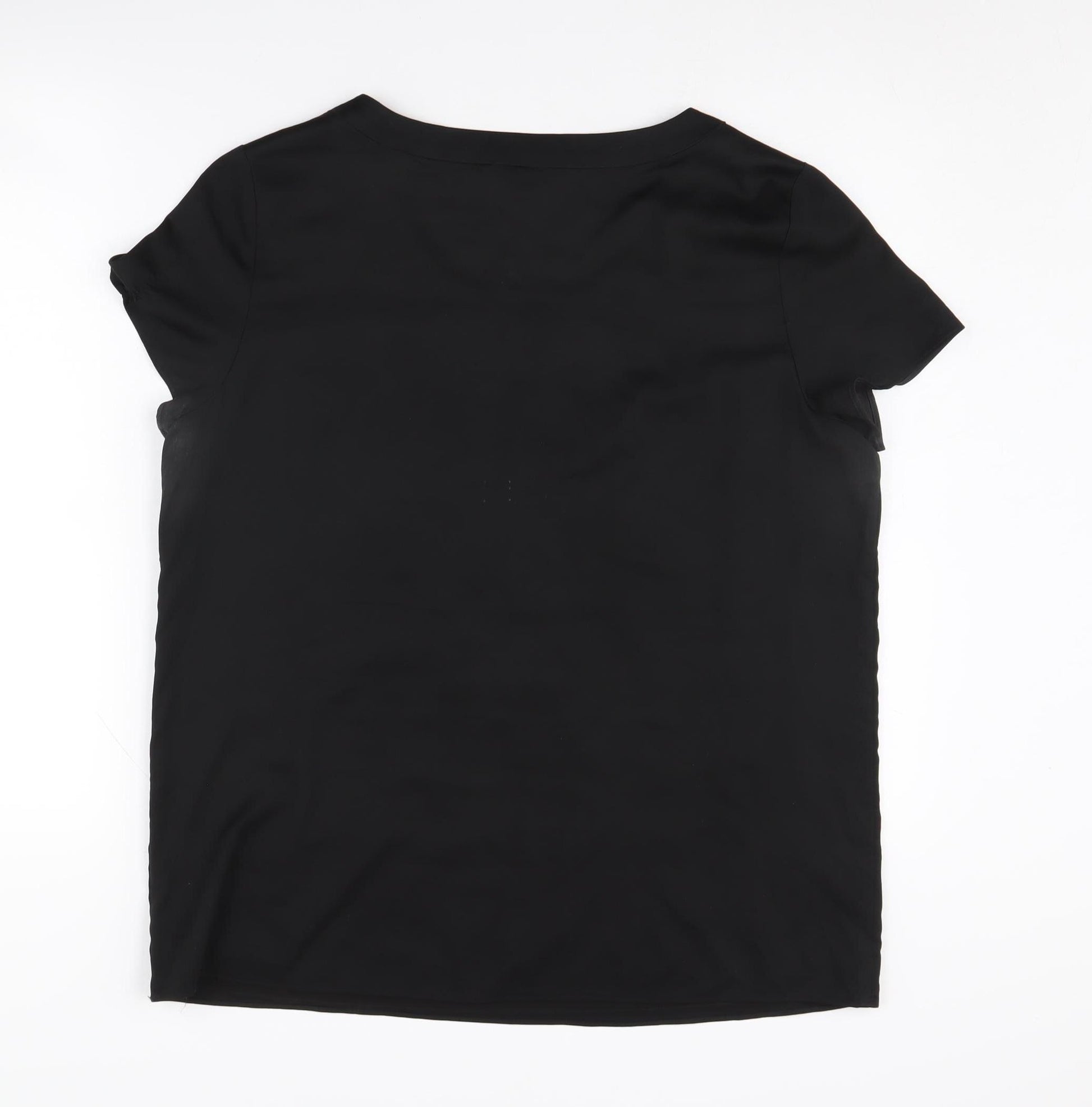 Zara Women’s Black V-Neck Basic Cotton Short Sleeve T-Shirt Size L