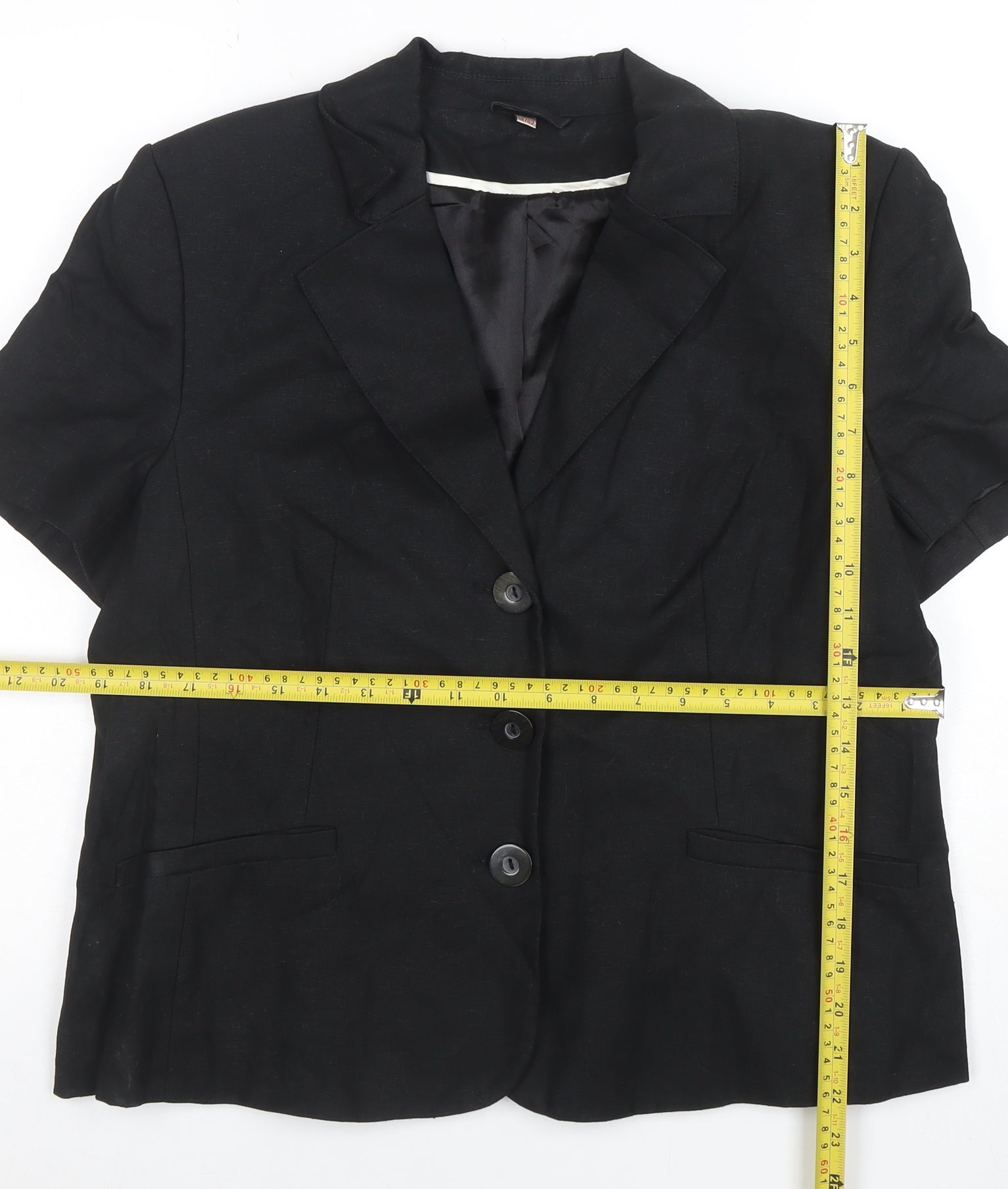 Women's Black Linen Blend Short Sleeve Blazer Size 16