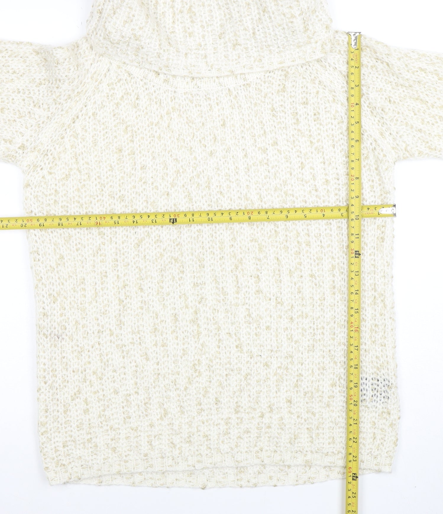 Women Ivory Chunky Roll Neck Knit Jumper Size M