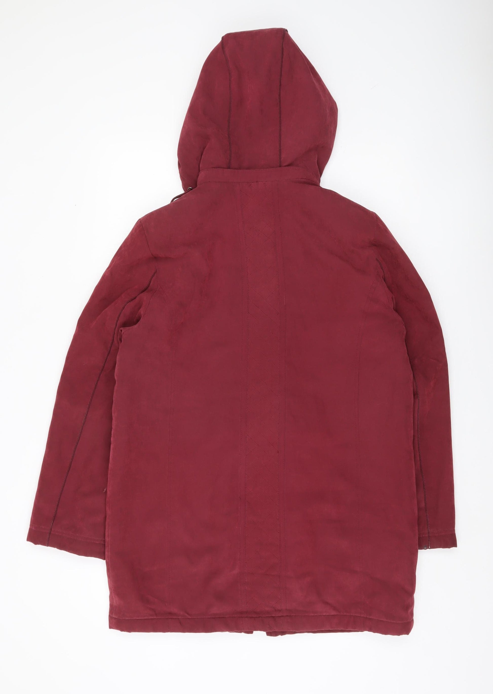Women's Red Parka Coat Hooded Mid-Length Size S