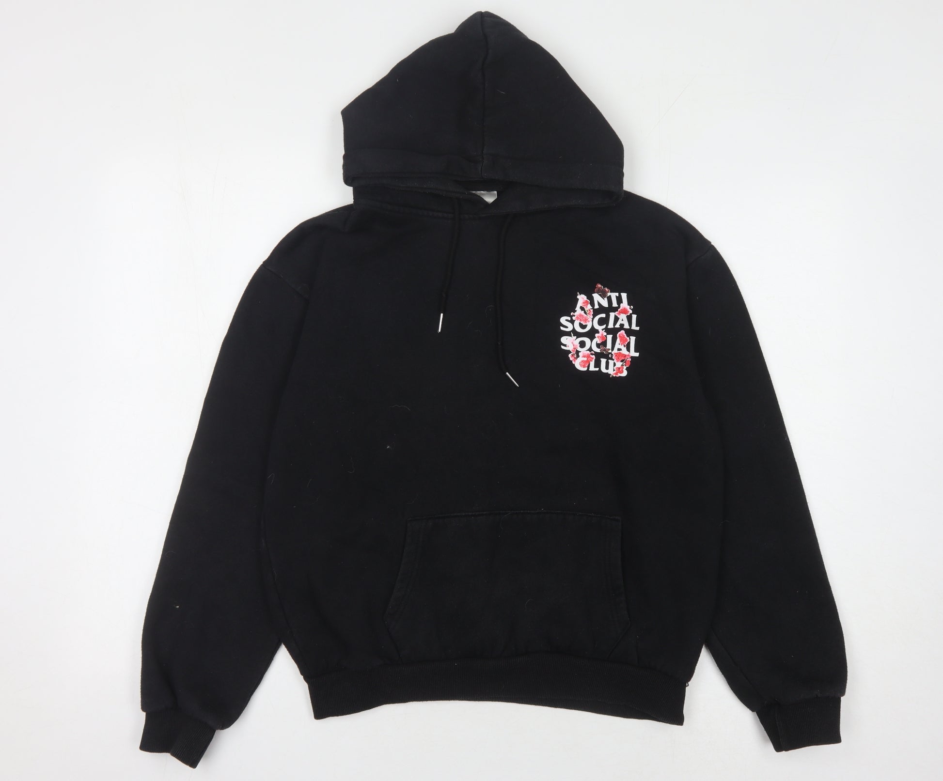 Embrace a relaxed, casual vibe with this Anti Social Social Club hoodie, designed in a versatile black shade suitable for any season. This unisex, pullover style hoodie features a standout logo graphic with floral accents, adding a touch of unique style to your wardrobe. Crafted from 100% cotton, the jersey fabric ensures a soft, comfortable fit that you can enjoy in cooler autumn and winter months. Its regular fit and large size make it perfect for layering over your favourite outfits for added warmth. The hoodie comes with long sleeves and a practical crew neck design, offering a classic look that's both stylish and functional. Ideal for casual occasions, this piece is machine washable for easy care. While it shows slight wear, its well-maintained condition makes it a great choice for anyone looking to add a touch of street-smart sophistication to their collection. Stay on trend and elevate your casual ensemble with this hoodie from Anti Social Social Club.