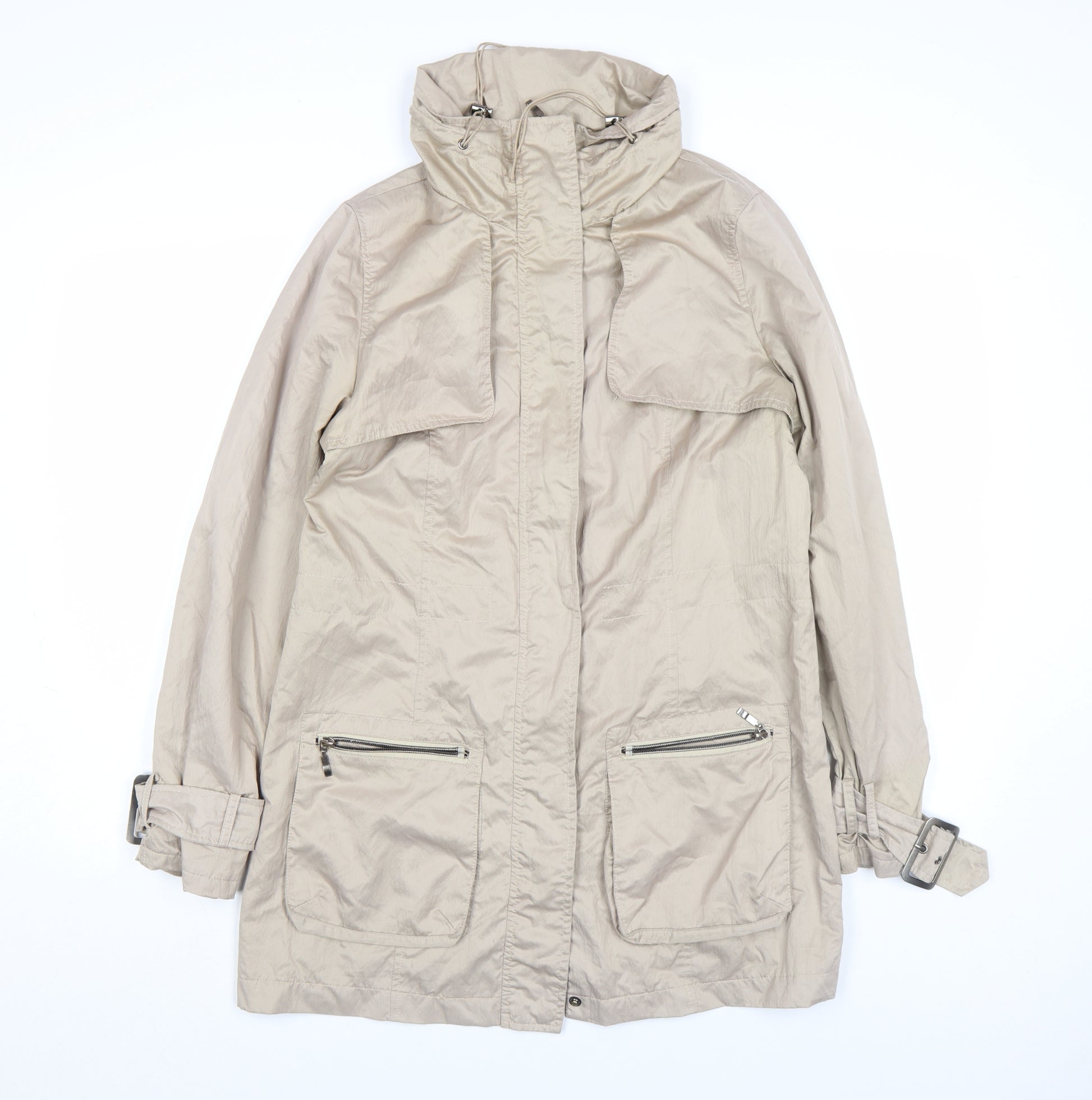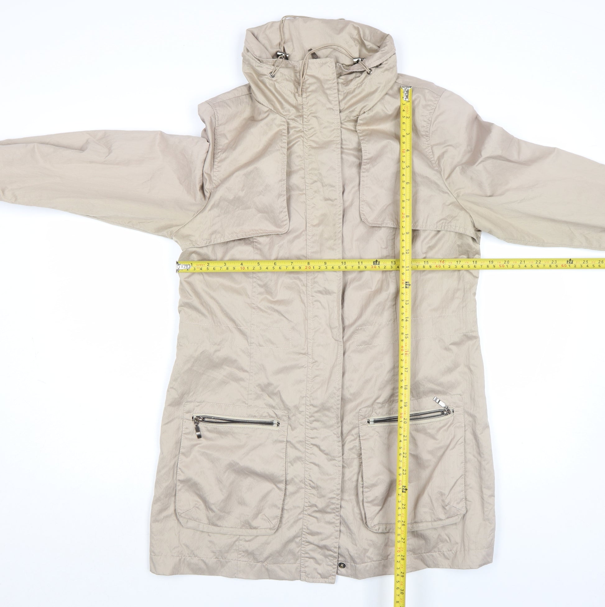 This stylish Antoni & Alison women’s beige parka coat is a perfect blend of modern utility and understated sophistication. Crafted from a smooth softshell blend of 60% polyester and 40% nylon, it offers durability and lightweight comfort that’s ideal for the cooler autumn and winter months. The coat features a longline design that provides extra coverage and warmth while maintaining a flattering silhouette suitable for everyday wear or travel. Designed with practicality in mind, it includes a hood with adjustable drawcords for weather protection, full zip fastening with a storm flap for a clean and secure closure, and buckle strap detailing on the cuffs and waist for a custom fit. Two front zipped patch pockets offer secure space for essentials, while the lined interior ensures a comfortable wear against the skin. The coat’s neutral beige tone makes it exceptionally versatile, easily paired with both casual jeans and smart workwear outfits.The Antoni & Alison label is synonymous with artistic design and quality tailoring, and this piece subtly reflects their creative, modern aesthetic while prioritising comfort and function. Whether worn for a crisp autumn stroll, a weekend getaway, or the daily commute, this coat delivers timeless appeal. The fabric composition provides reliable resistance to light wind and cool weather, and the coat’s structured styling with belt and button accents adds an elevated touch to a classic outerwear essential.With its excellent pre-loved condition and gently worn feel, this piece has been well cared for and remains in exceptional shape with minimal signs of wear. This parka promises to be a durable wardrobe addition that combines both practicality and elegance — ideal for those who appreciate thoughtful design and lasting quality. A premium coat that embodies understated British chic, this Antoni & Alison parka is ready to enhance your seasonal wardrobe with easy sophistication.