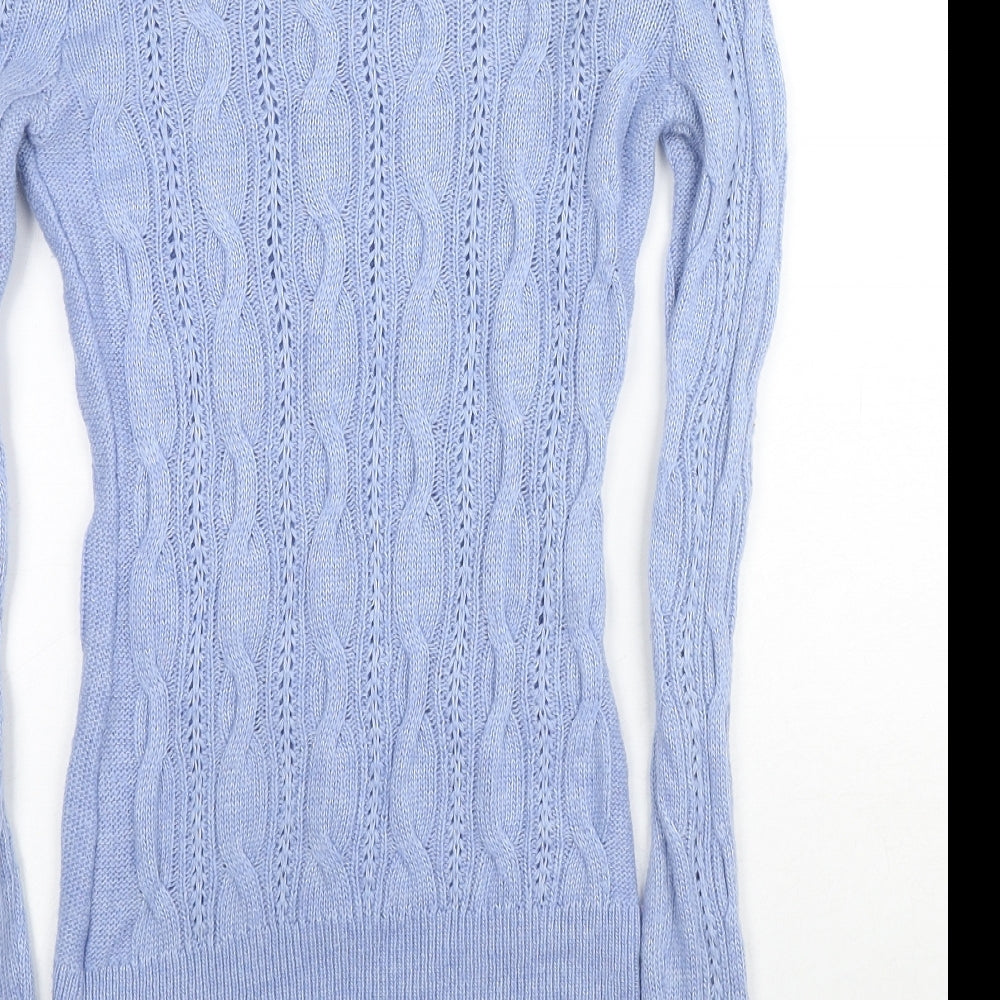 Womens Blue Scoop Neck Nylon Pullover Jumper Size 12