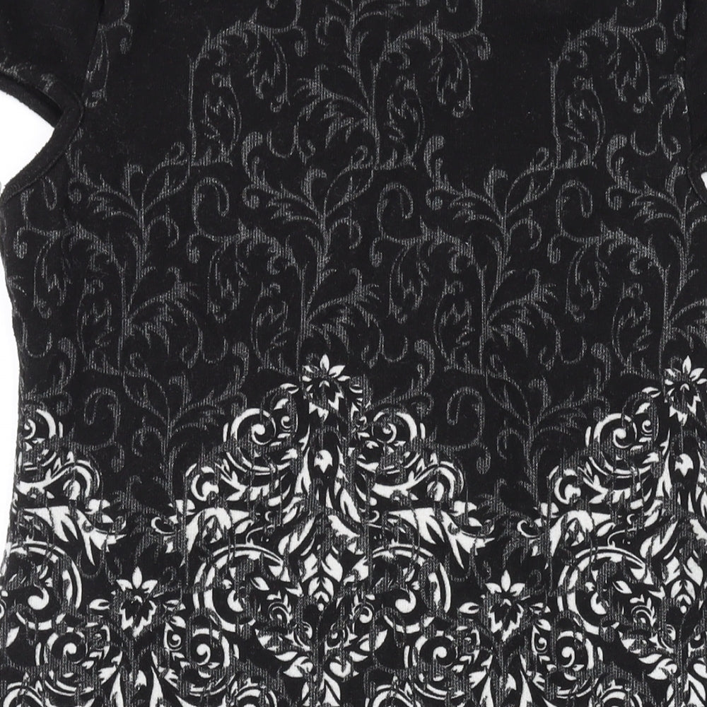 Womens Black Geometric Polyester A-Line Size S Scoop Neck Pullover