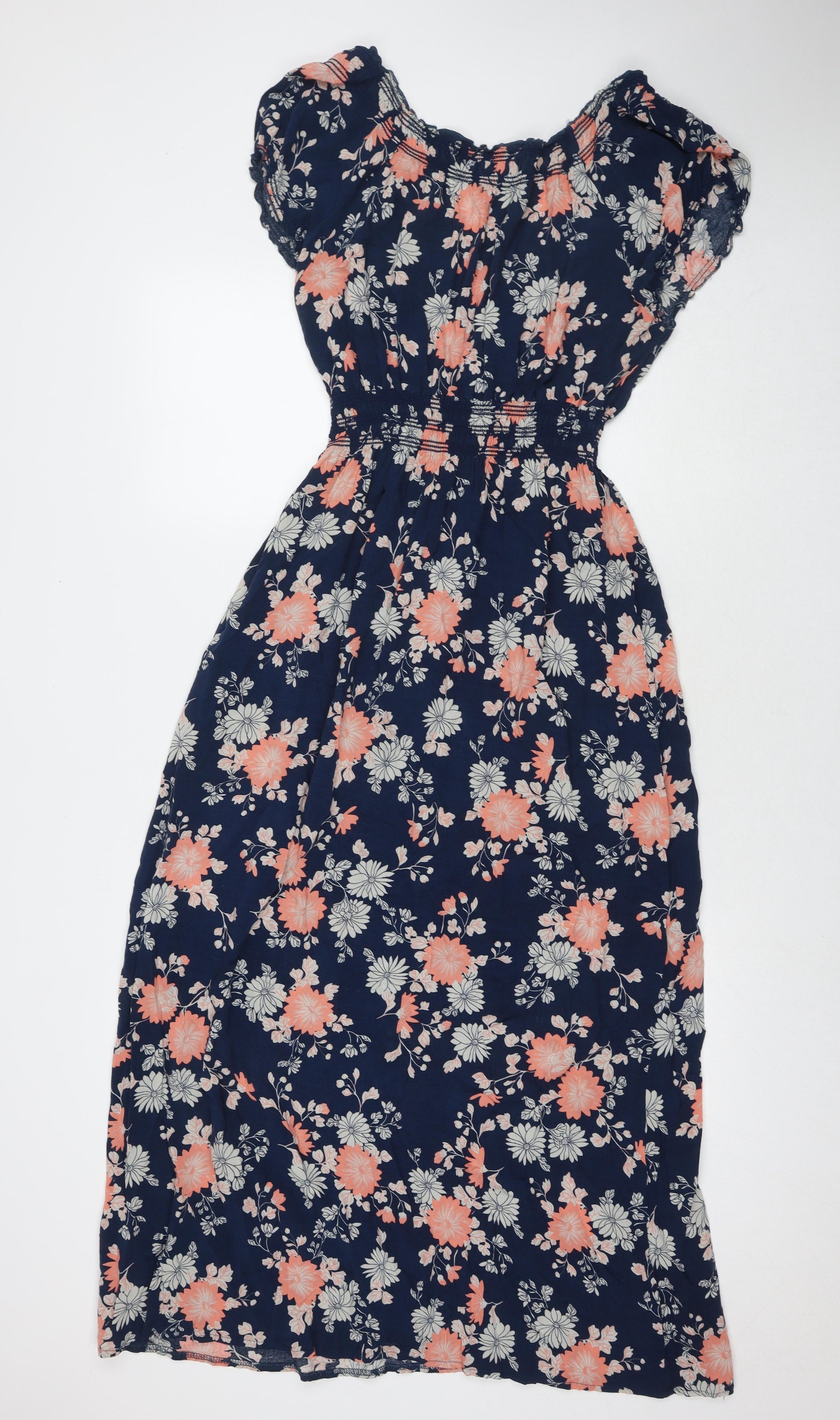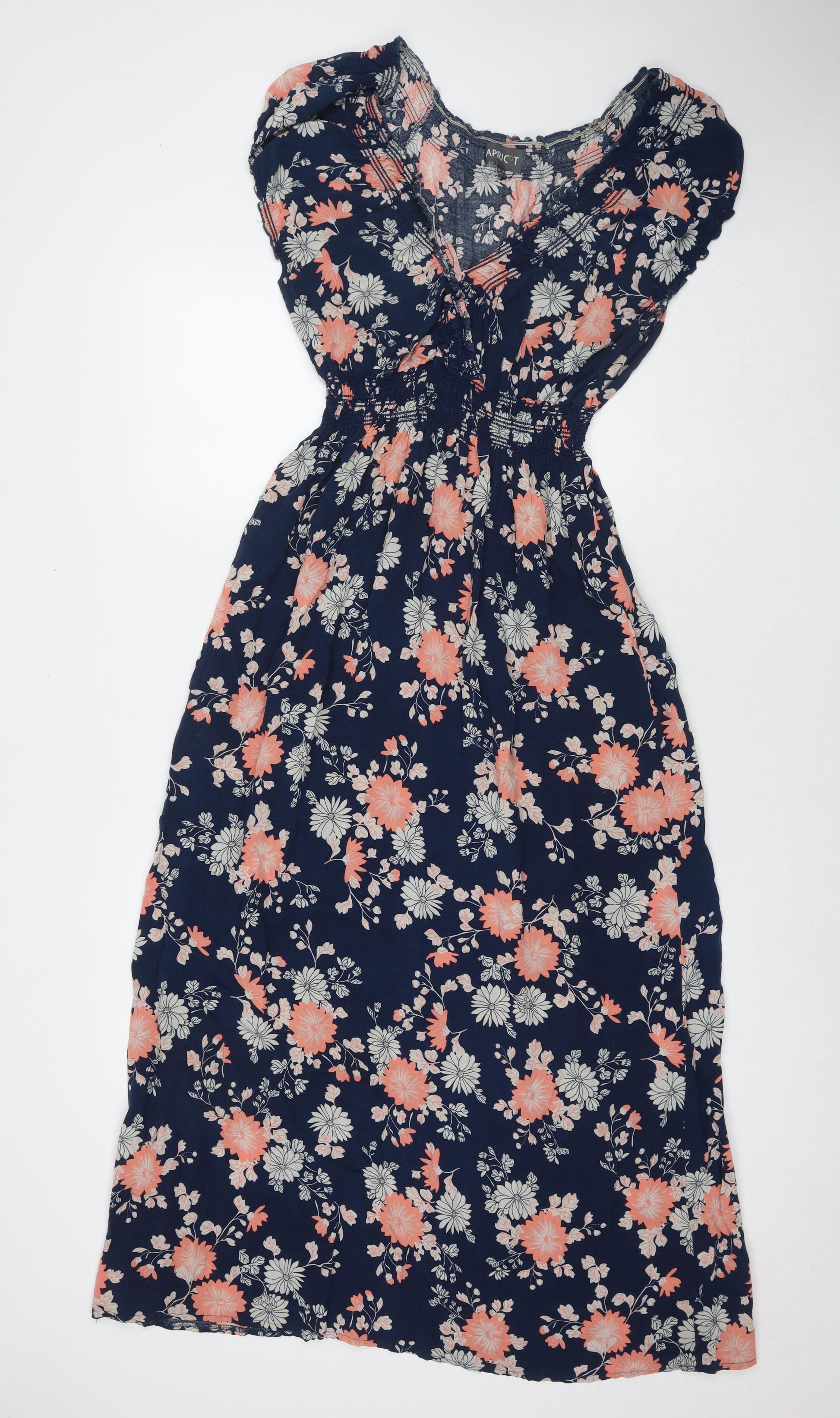 Womens Blue Floral Viscose Maxi Size 14 V-Neck Pullover