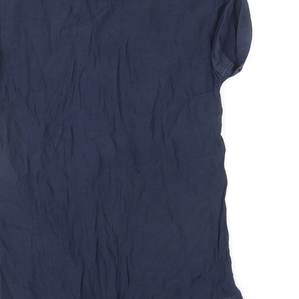 Womens Blue Viscose Basic Button-Up Size 12 V-Neck