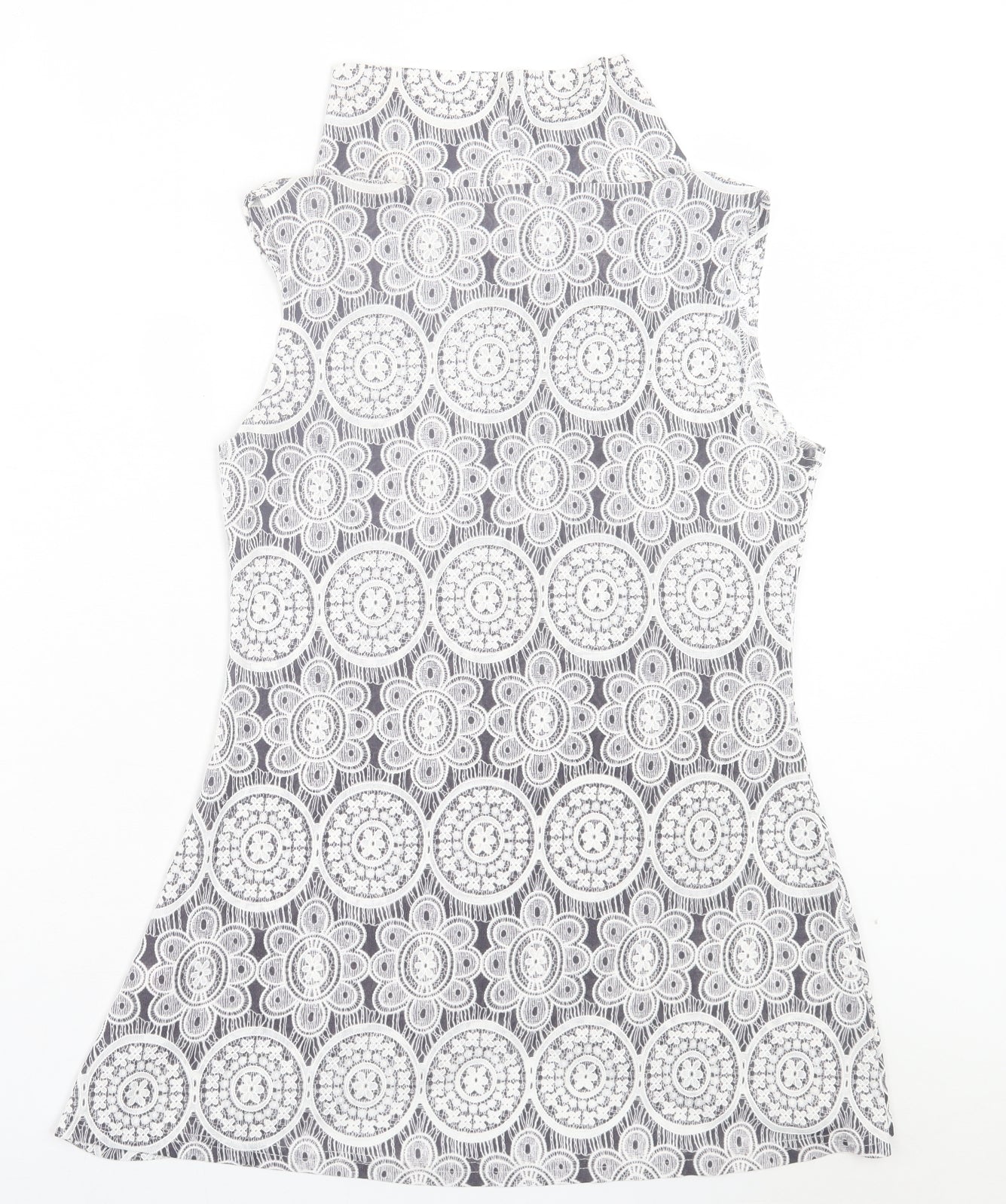 Womens Grey Geometric Polyester A-Line Size 10 High Neck Pullover