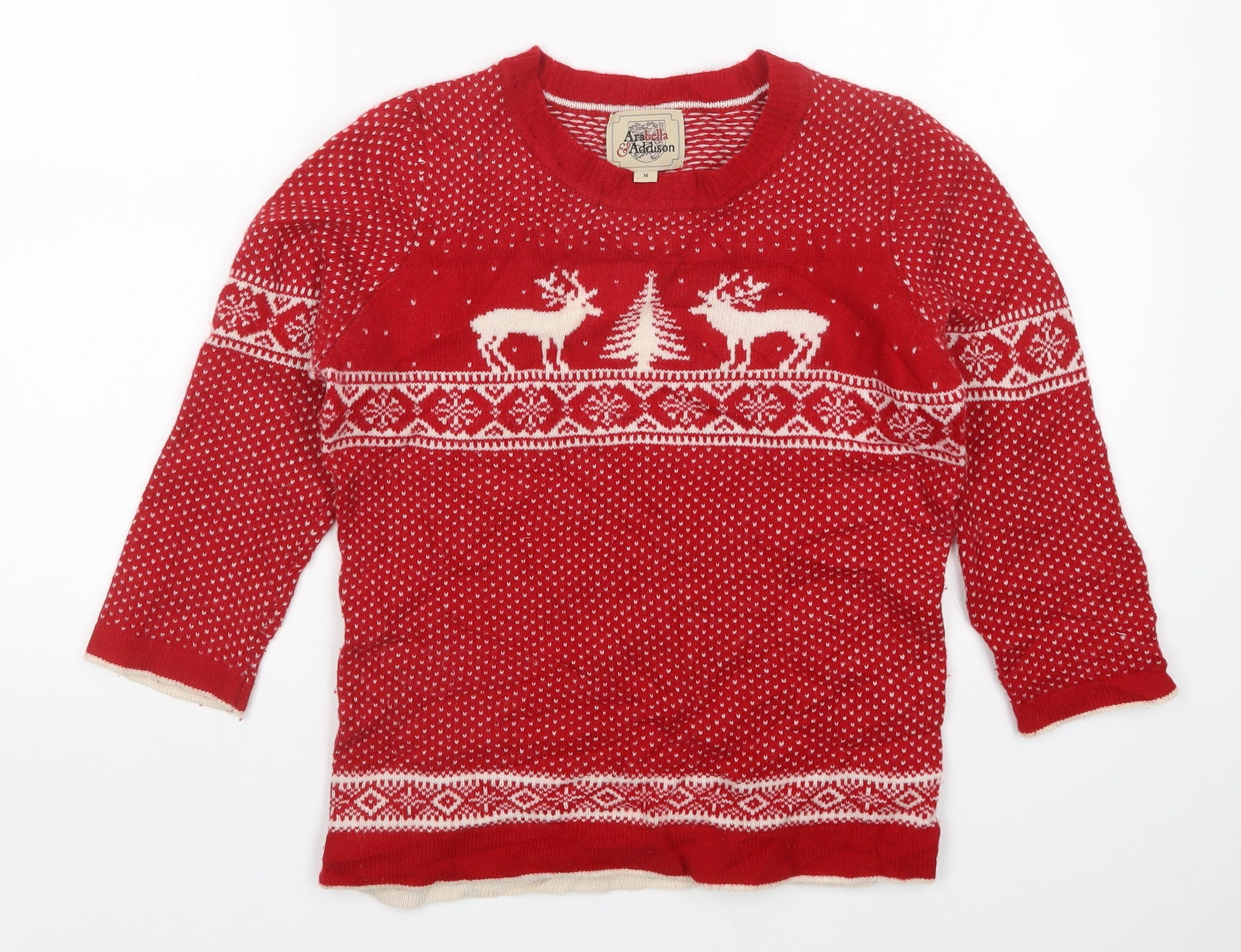 Womens Red Polka Dot Pullover Jumper Size M - Christmas