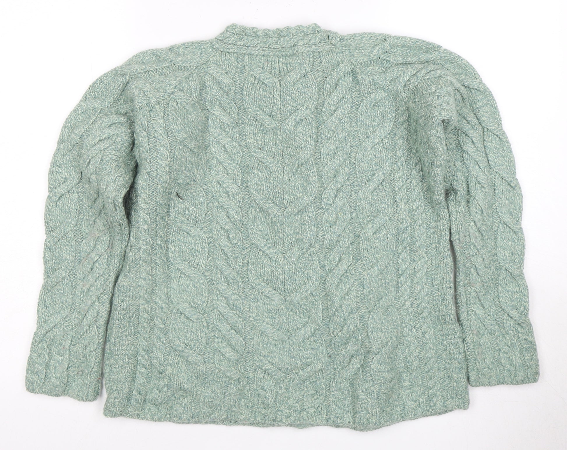 This exquisite Aran Women's Cable-Knit Jumper in a soothing shade of green is perfect for both warmth and style during the autumn and winter months. Crafted with 100% Merino Wool, it promises the ultimate luxurious feel and comfort. The pullover style features a classic crew neckline and a stylish long sleeve raglan design, ensuring a regular fit that’s both flattering and flexible. The cable-knit pattern not only adds texture but also elevates its look, making it a must-have addition to your casual wardrobe.Whether you're enjoying a chilly day outdoors or relaxing indoors, this jumper is a versatile piece that matches effortlessly with jeans, skirts, or trousers. Carry the timeless charm of Irish craftsmanship with the signature Aran design, adding a touch of elegance to your everyday look. Designed for the discerning woman who values quality and tradition, this knitwear combines practical warmth with enduring style.Maintenance is easy - simply hand wash to preserve its exquisite quality. This piece remains in excellent condition, with no visible signs of previous wear, offering you the next best thing to buying brand new. Invest in this fine jumper and experience the unmatched comfort of genuine Merino wool, keeping you cozy and chic through every cool-weather occasion.