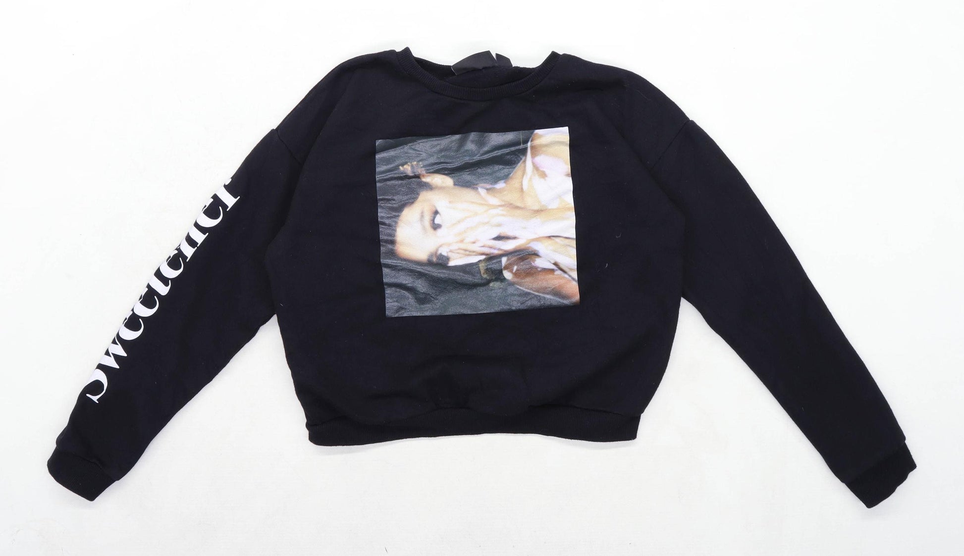 Girls Graphic Black Cropped Sweatshirt Age 13-14 Years