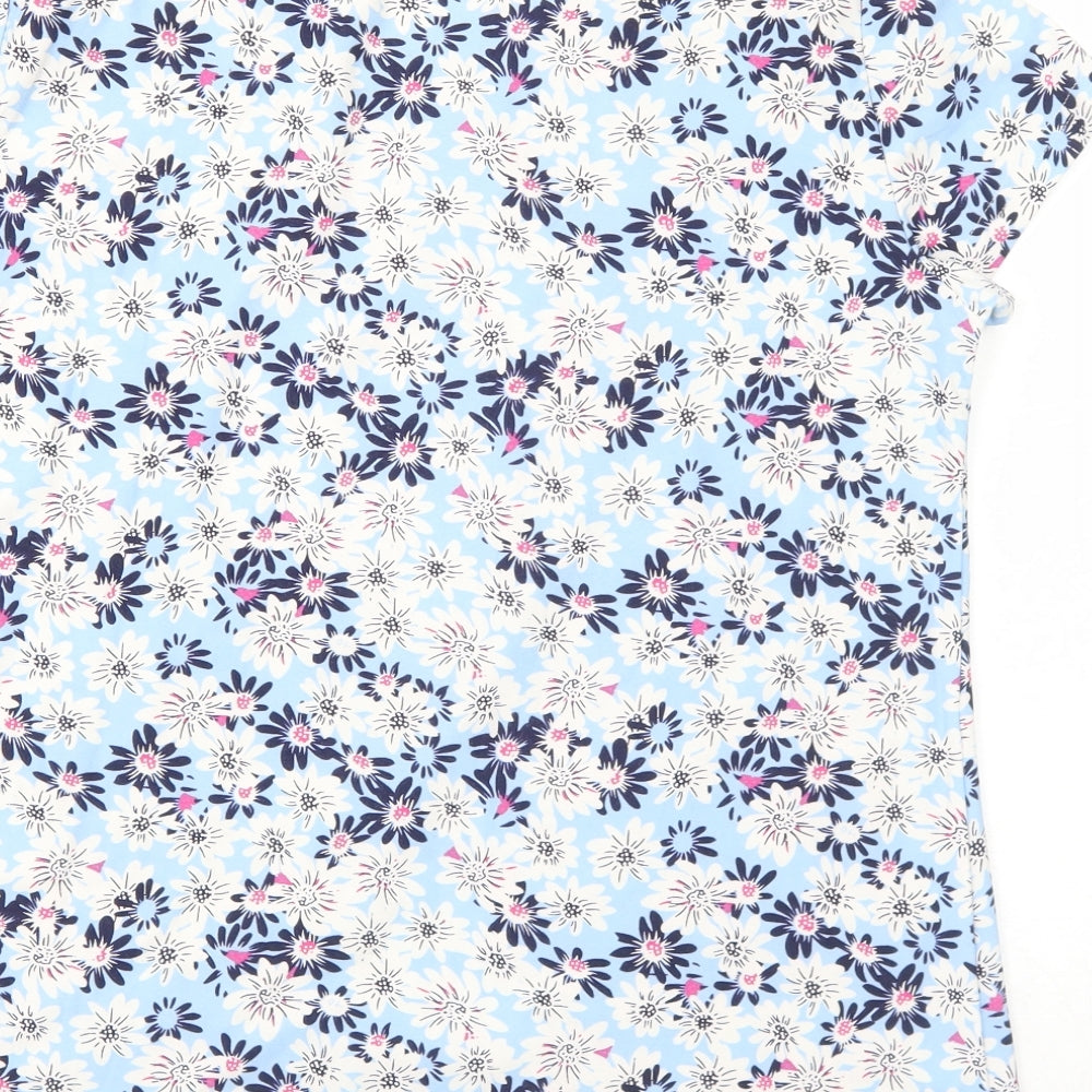 Womens Blue Floral Polyester Basic T-Shirt Size 14 Round Neck